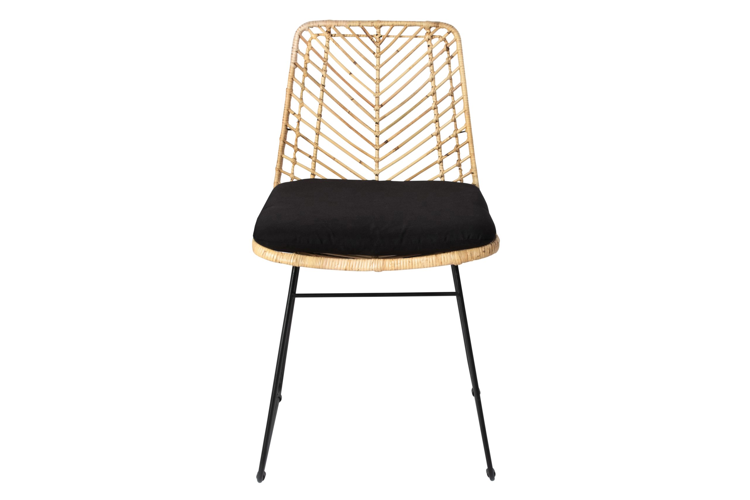 Der Stuhl mit Metallfüßen hat einen stabilen Rahmen, welcher mit Korbgeflecht aus Rattan umflochten ist. Jedes Flechtwerk ist individuell und unterscheidet sich in Farbe und gewollten Unregelmäßigkeiten des Geflechts. Das natürliche und leicht exotische Erscheinungsbild eines Rattanstuhls bringt Urlaubsfeeling in die eigenen vier Wände. Der Stuhl ergänzt Wohneinrichtungen im mediterranen oder kolonialen Stil perfekt. Zudem passt er perfekt in jedes Wohn-, Gäste-, oder Esszimmer und ist auch für eine Ferienwohnung gut geeignet.