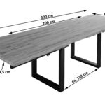 B-Ware Esszimmertisch Barcelona, 200 (300) x 100 cm, Akazienholz massiv, lackiert & stonefarben, echte Baumkante, U-Gestell aus Metall Mattschwarz + 2 x Ansteckplatte