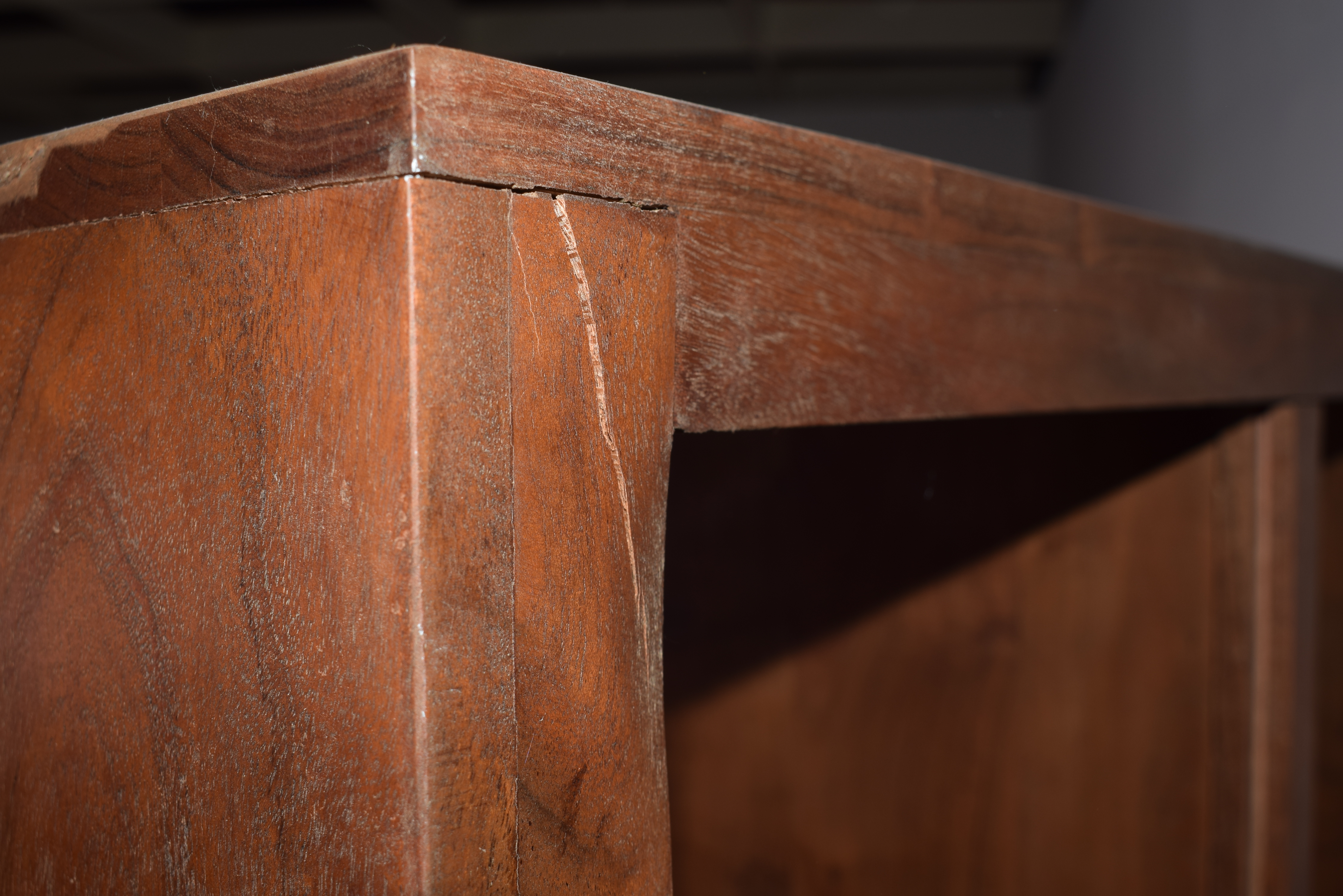dieser edlen Holzvitrine. Die Vitrine bietet durch insgesamt sieben offene