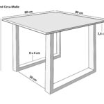 - Länge: 80 cm | Breite: ca. 80 cm | Gesamthöhe: ca. 77 cm | Tischplattenstärke: ca. 2,2 – 2,6 cm