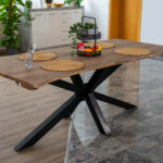 - Jeder Tisch wird durch die Verwendung der 26 mm dicken Holzplatte aus echter Baumkante zum unverwechselbaren Unikat.