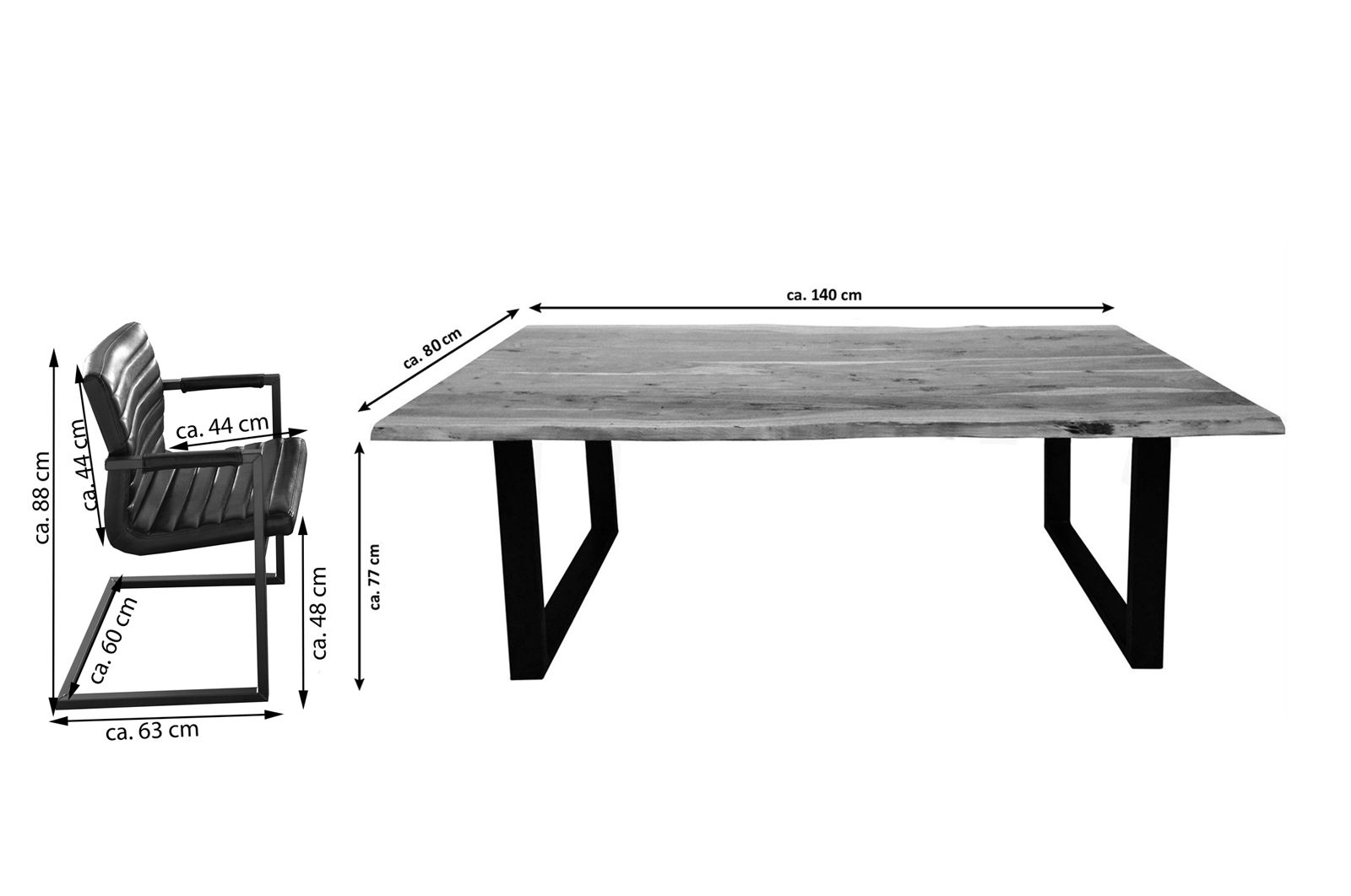 - Breite: ca. 80 cm | Länge: 140 cm | Gesamthöhe: ca. 77 cm | Tischplatte: ca. 26 mm