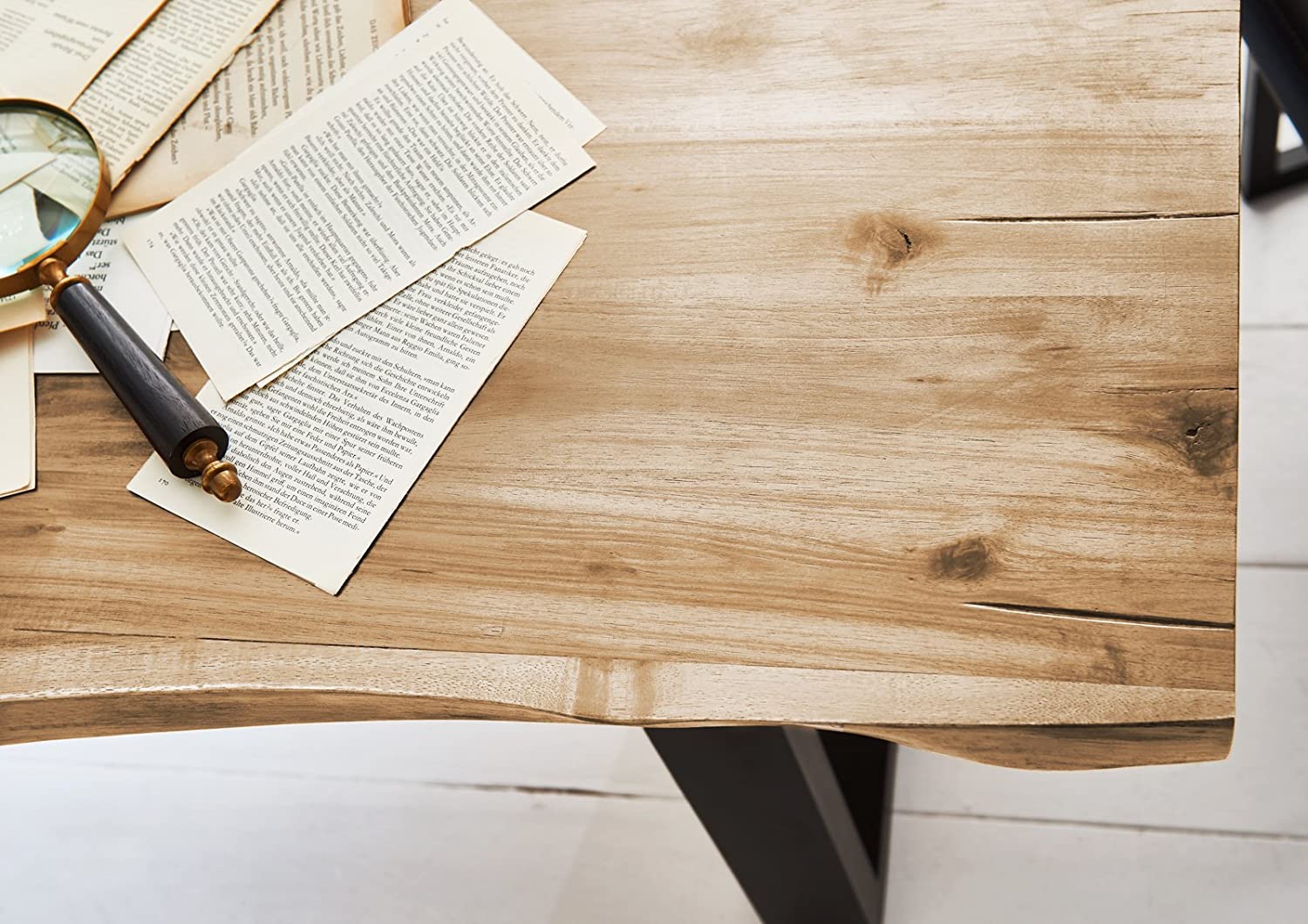 Da es sich bei diesen Massivholzmöbeln um ein Naturprodukt handelt, kann es zu Astlöchern oder unterschiedlichen Farbschmückungen kommen, welche jedoch keine Fehler darstellen, sondern den individuellen Charakter des Echtholzes unterstreichen. Auch die Tiefe kann aufgrund der unregelmäßigen und asymmetrischen Formgebung um mehrere Zentimeter variieren. Alle diese Unterschiede machen die Esszimmermöbel zu einem einmaligen Unikat.
