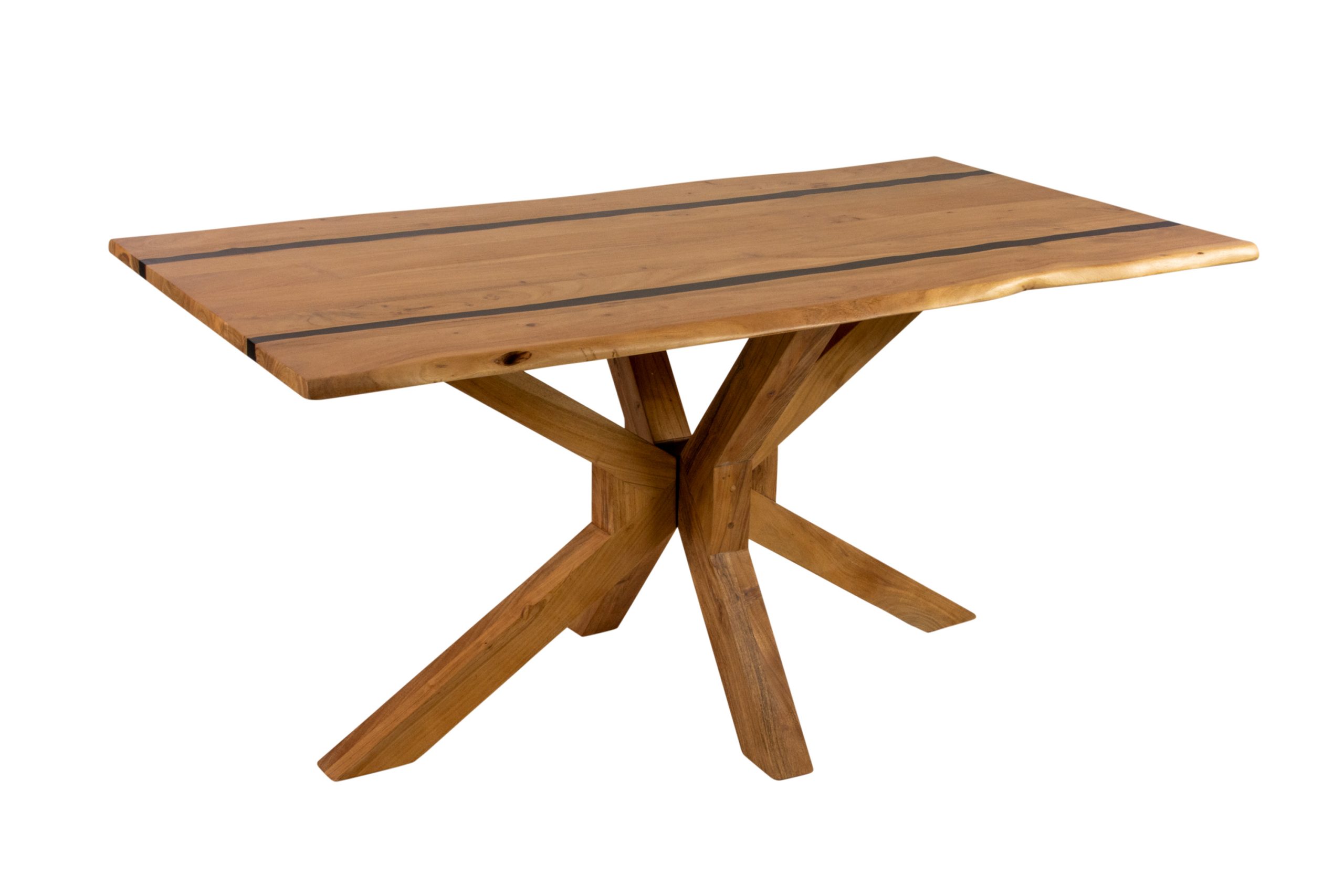 Esstisch Pedro | Akazienholz | Farbe: Natur | Resin-Adern | echte Baumkante | Spider-Gestell Holz Natur | 140 x 80 cm