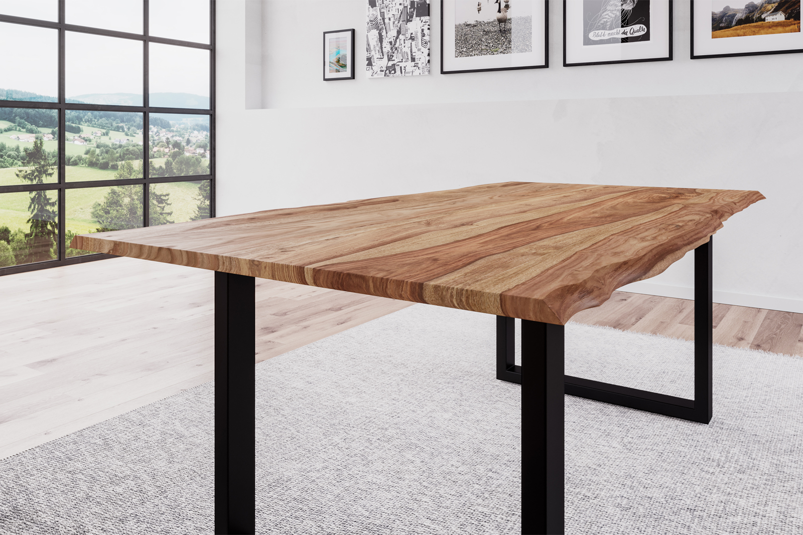 - Hochwertiger und trendiger Esstisch mit 26 mm dicker Holzplatte mit echter Baumkante.