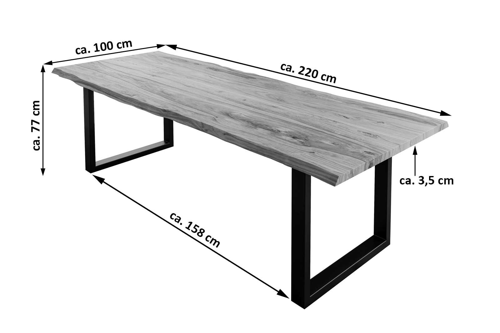 Baumkantentisch 220x100cm London, Sheesham-Holz naturbelassen/Mattschwarz
