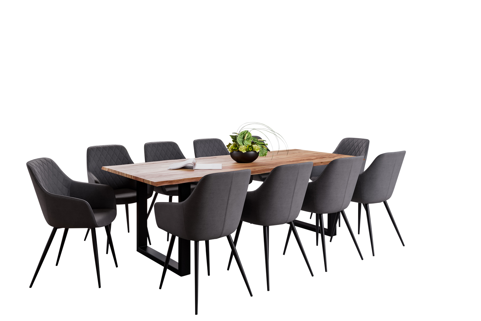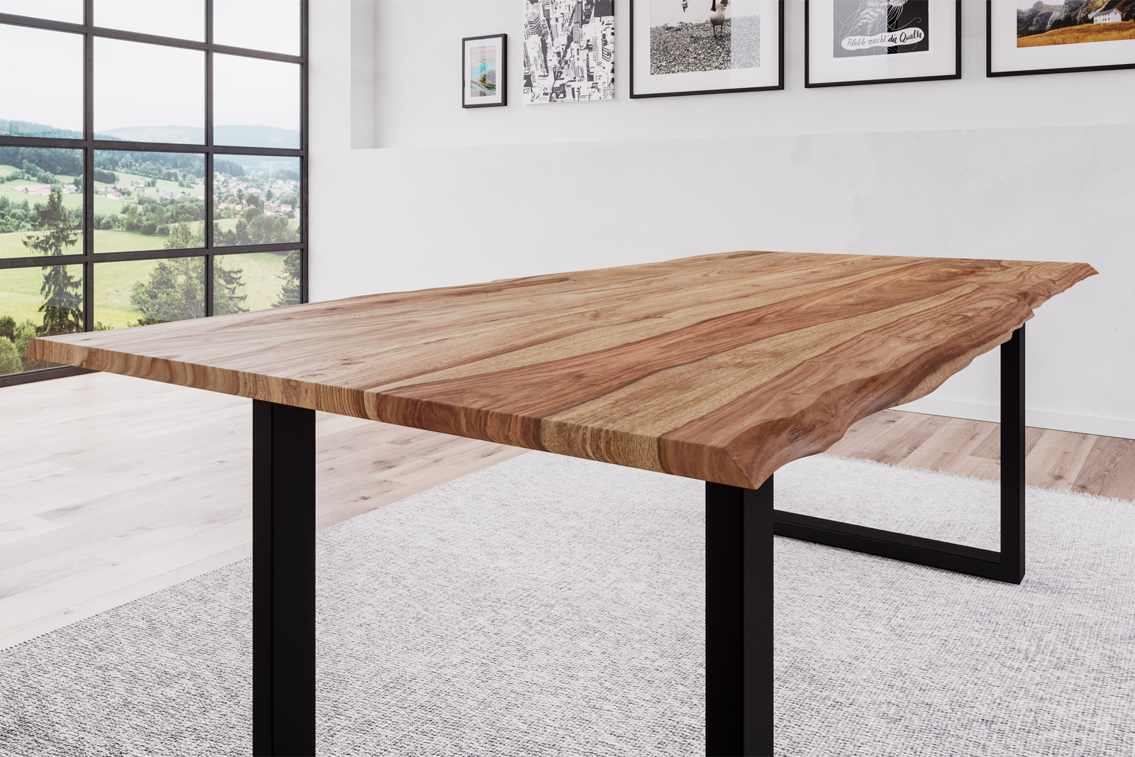 Baumkantentisch 220x100cm Mailand, Sheesham-Holz naturbelassen/Mattschwarz