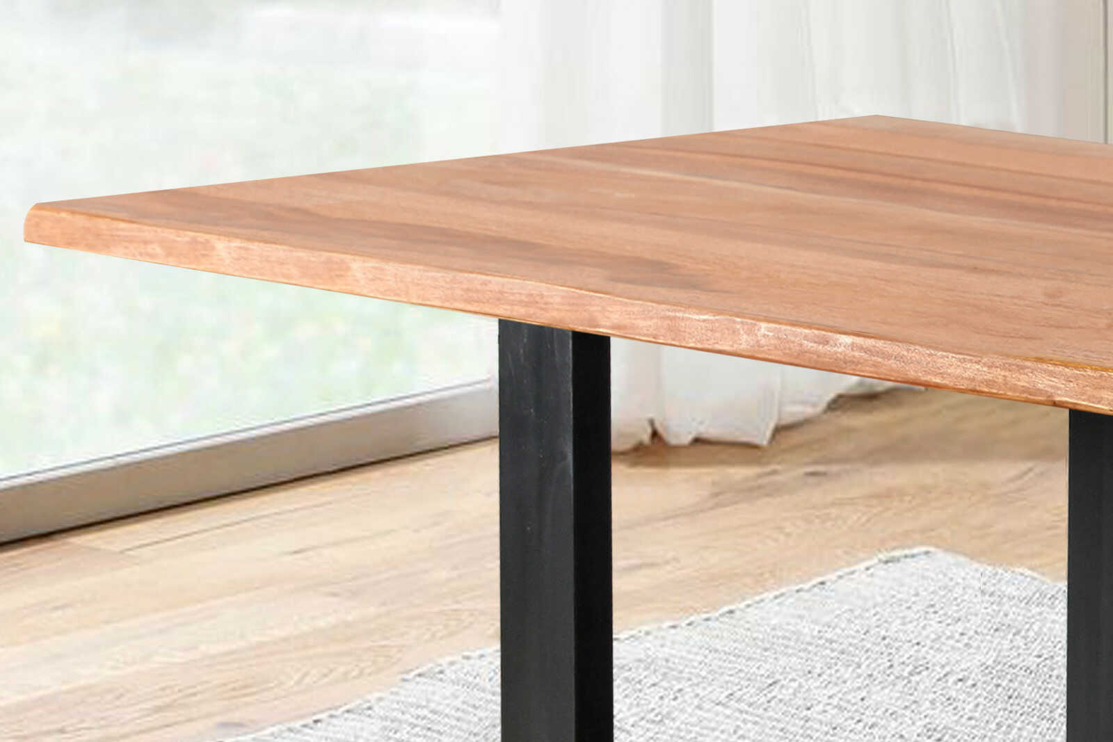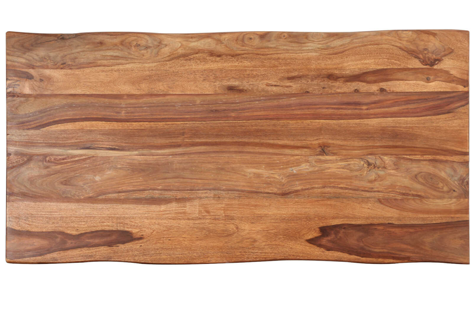 Baumkantentisch 220x100cm Marek, Sheesham-Holz Teakfarben gebeizt/Mattschwarz