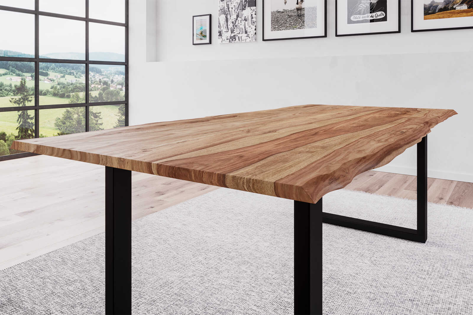 Natürliche & einzigartige Holzmaserung, U-Gestell in Mattschwarz, jedes Exemplar ist ein Unikat