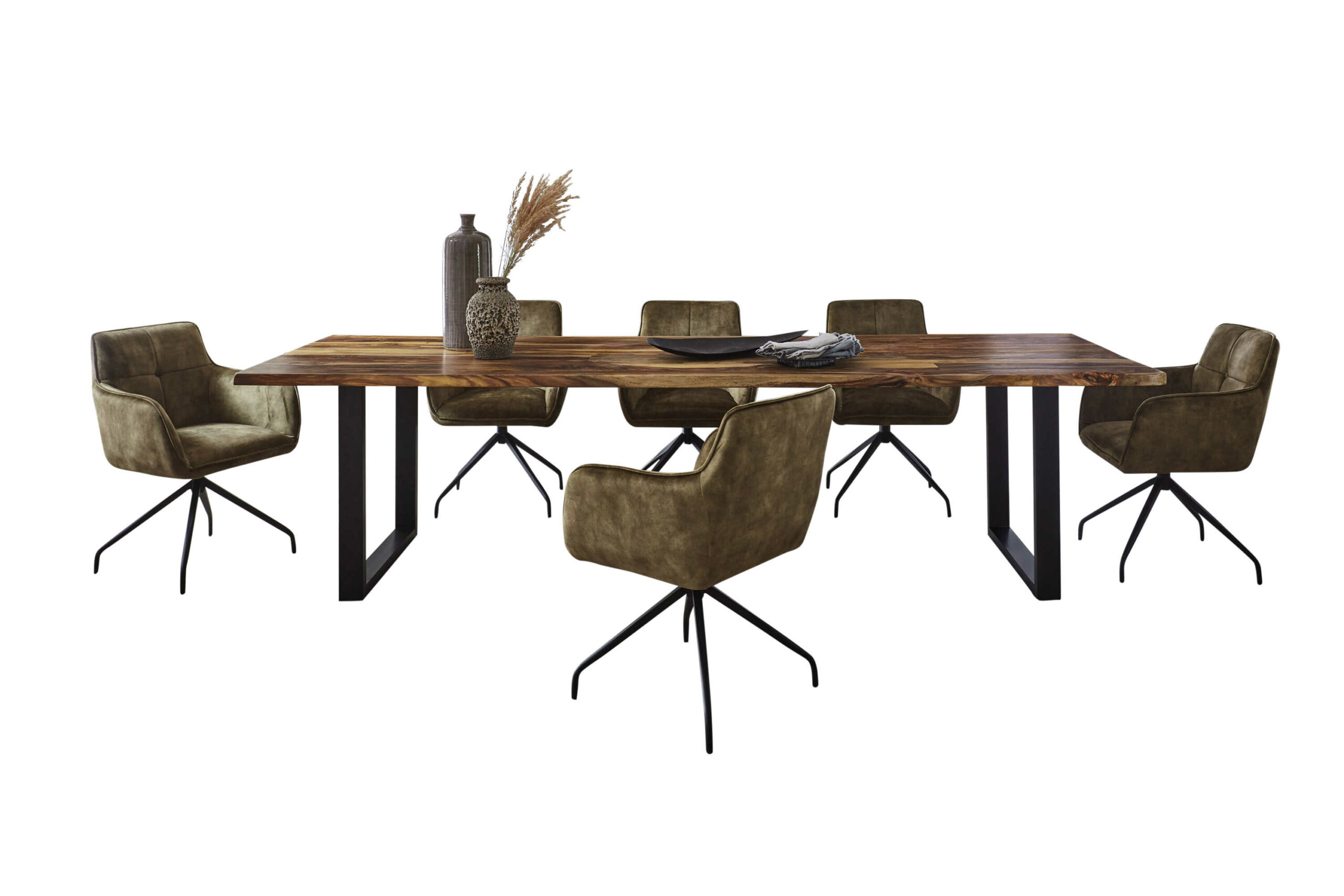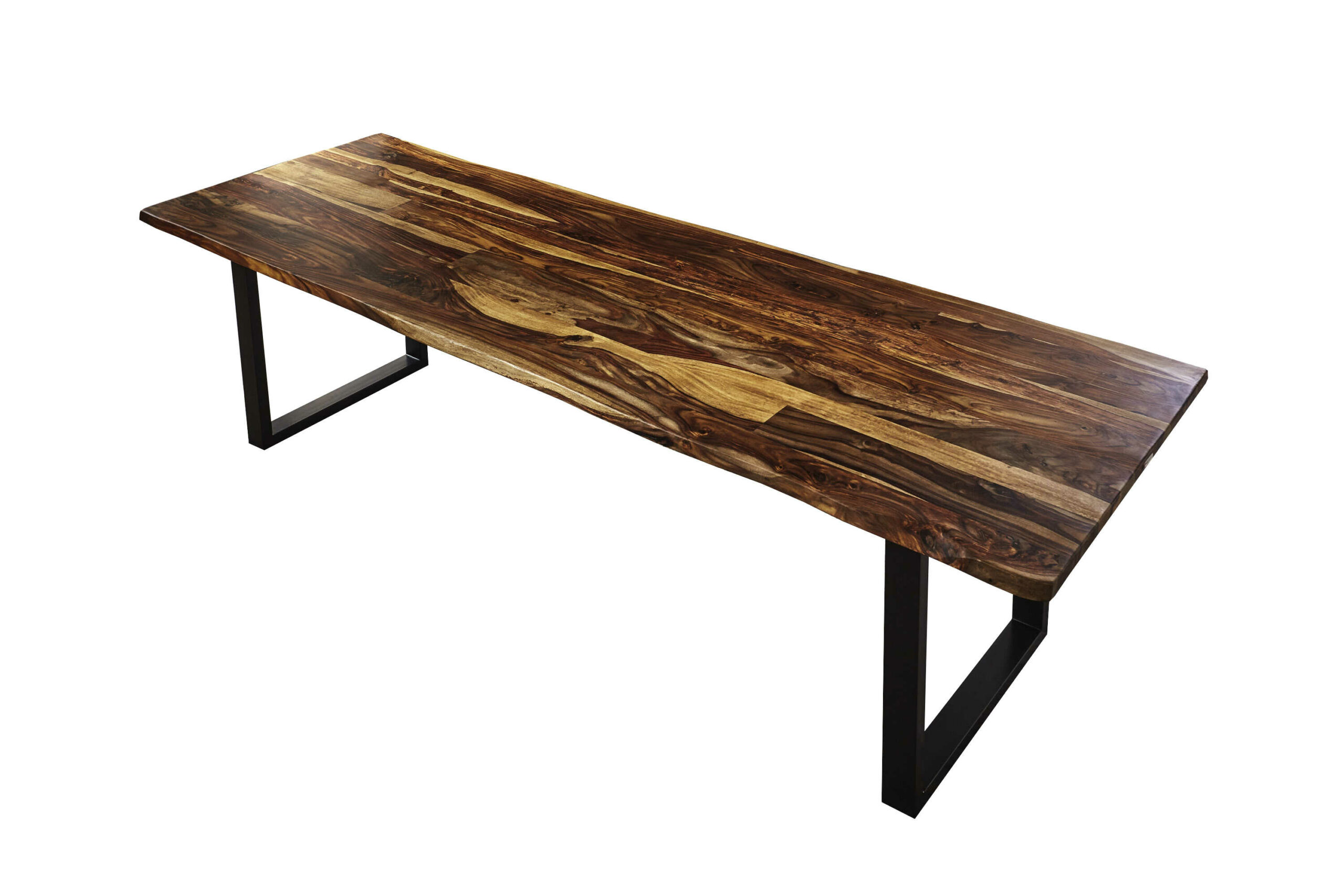 Baumkantentisch 240x100cm Lotti, Sheesham-Holz shinafarben lackier t / U-Gestell Mattschwarz