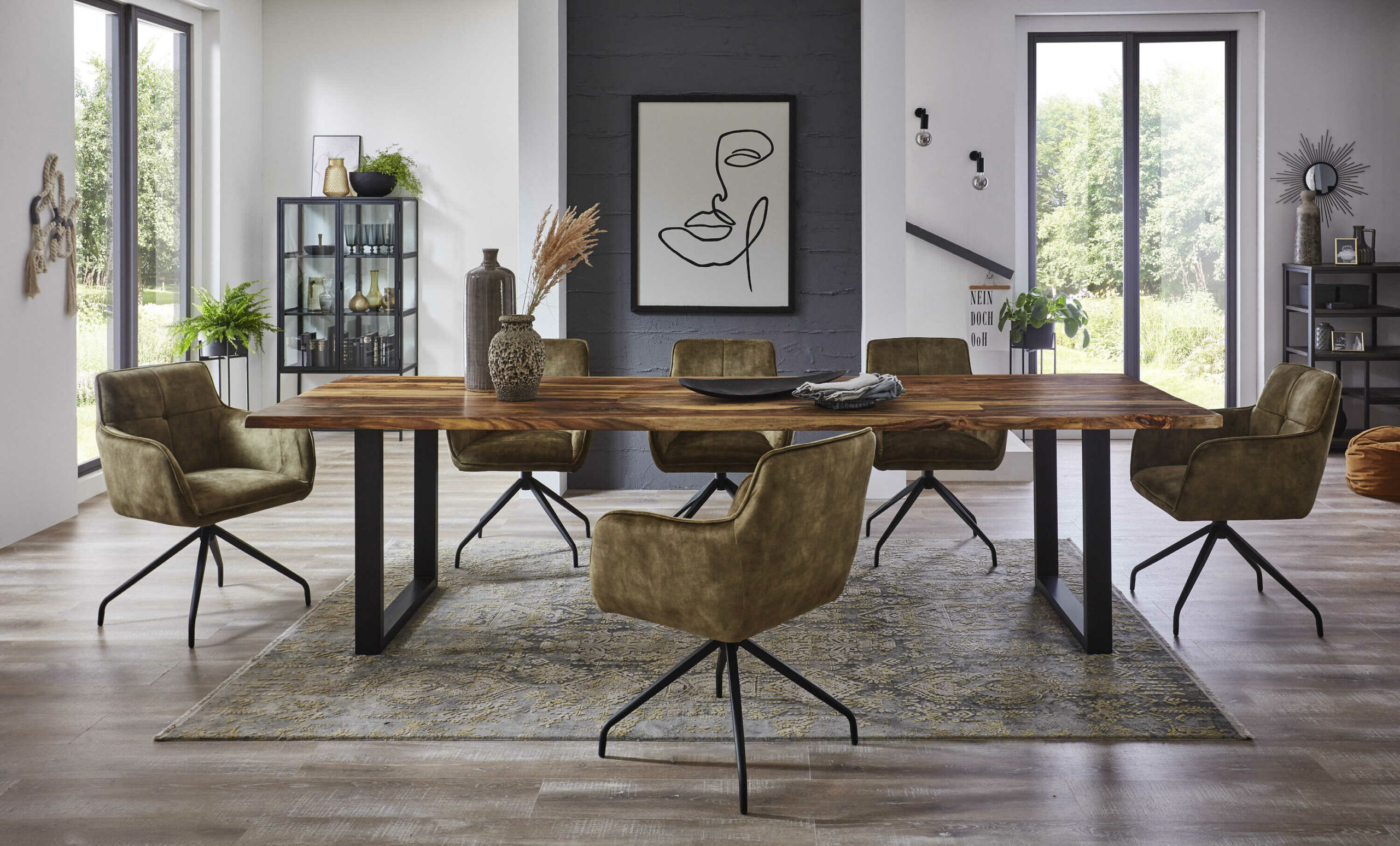 - Hochwertiger und trendiger Esstisch mit 35 mm dicker Holzplatte mit echter Baumkante.