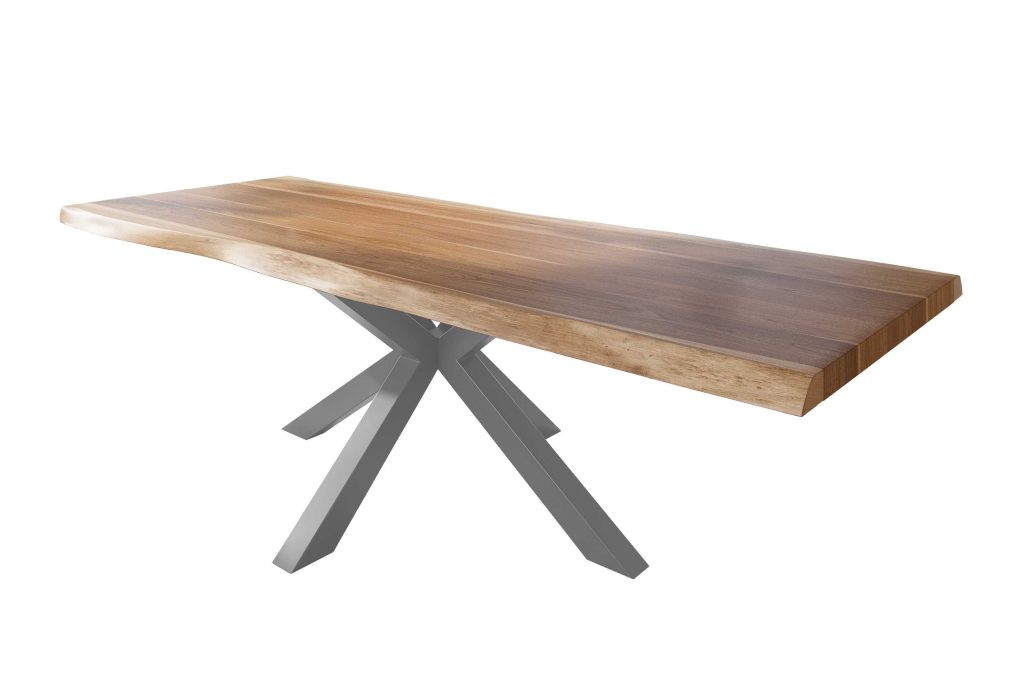 Esszimmertisch Titan | 260 x 110 cm | Akazienholz massiv & naturfarben | Spider-Gestell Metall Silber| echte Baumkante