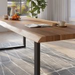 Der Esszimmertisch vereint natürliche Eleganz mit modernem Industrial-Design. Die massive Akazienholzplatte mit echter Baumkante bringt die natürliche Schönheit des Holzes perfekt zur Geltung. Das U-förmige Metallgestell bietet eine harmonische Kombination aus Stabilität und Stil, die Ihren Essbereich aufwertet.