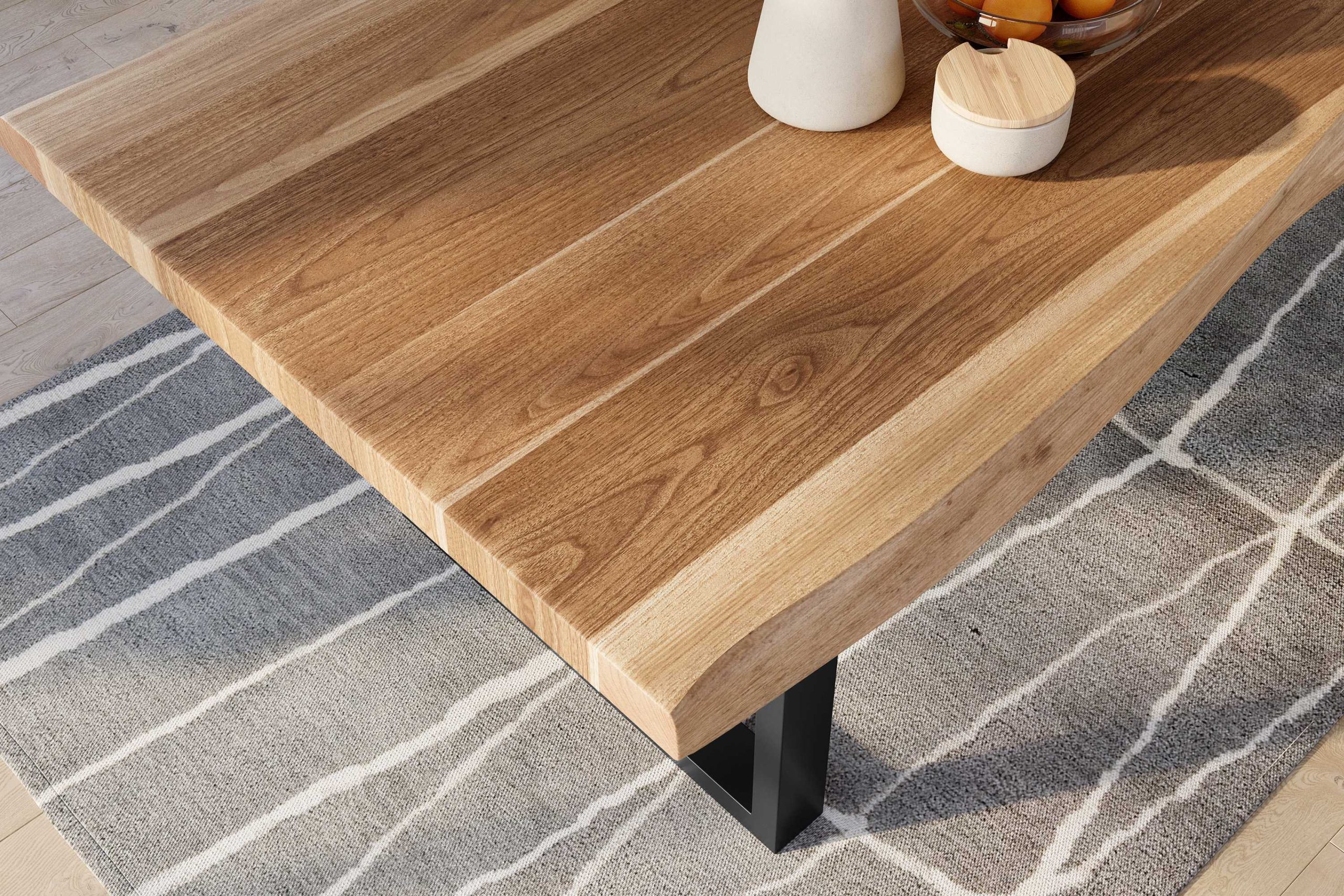 Esszimmertisch Titan | 260 x 110 cm | Akazienholz massiv & naturfarben | U-Gestell Metall Schwarz | echte Baumkante