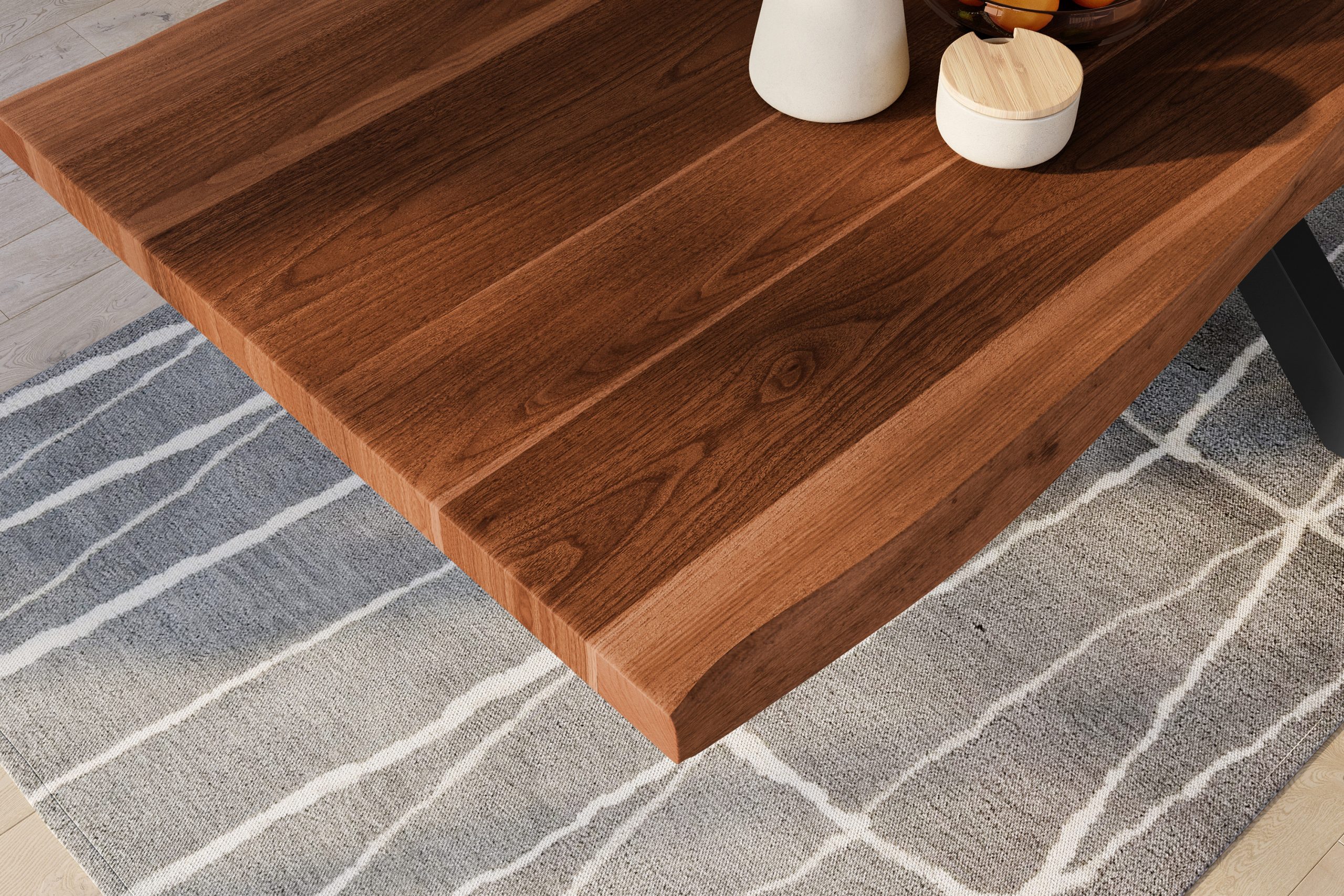 - Unterschiedliche Kantenausprägungen, Maserungen sowie Farbnuancen machen jeden Tisch zum Einzelstück.