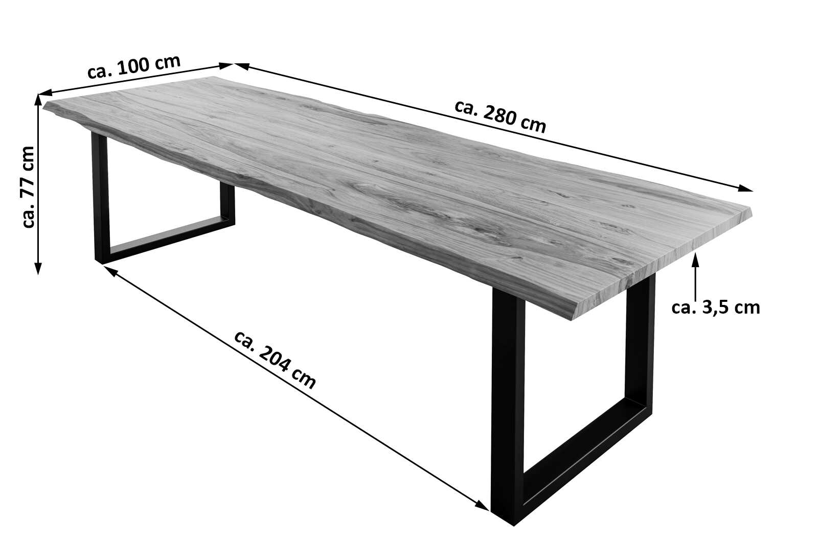 Baumkantentisch 280x100cm London, Sheesham-Holz naturbelassen/Mattschwarz
