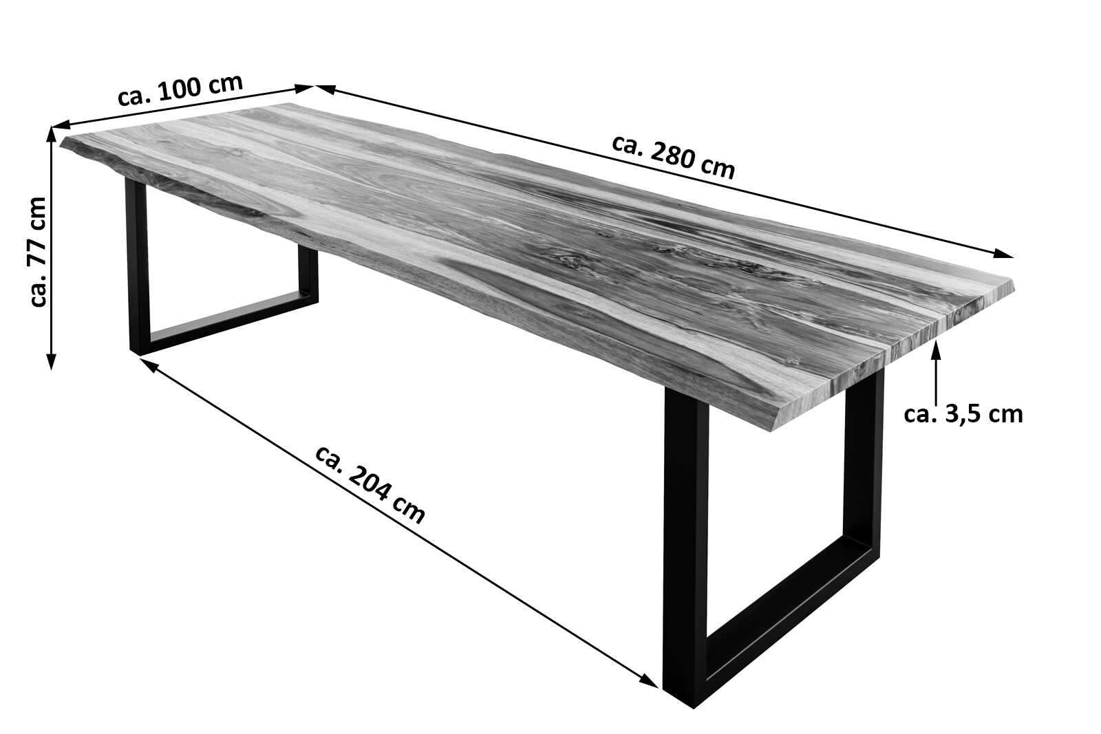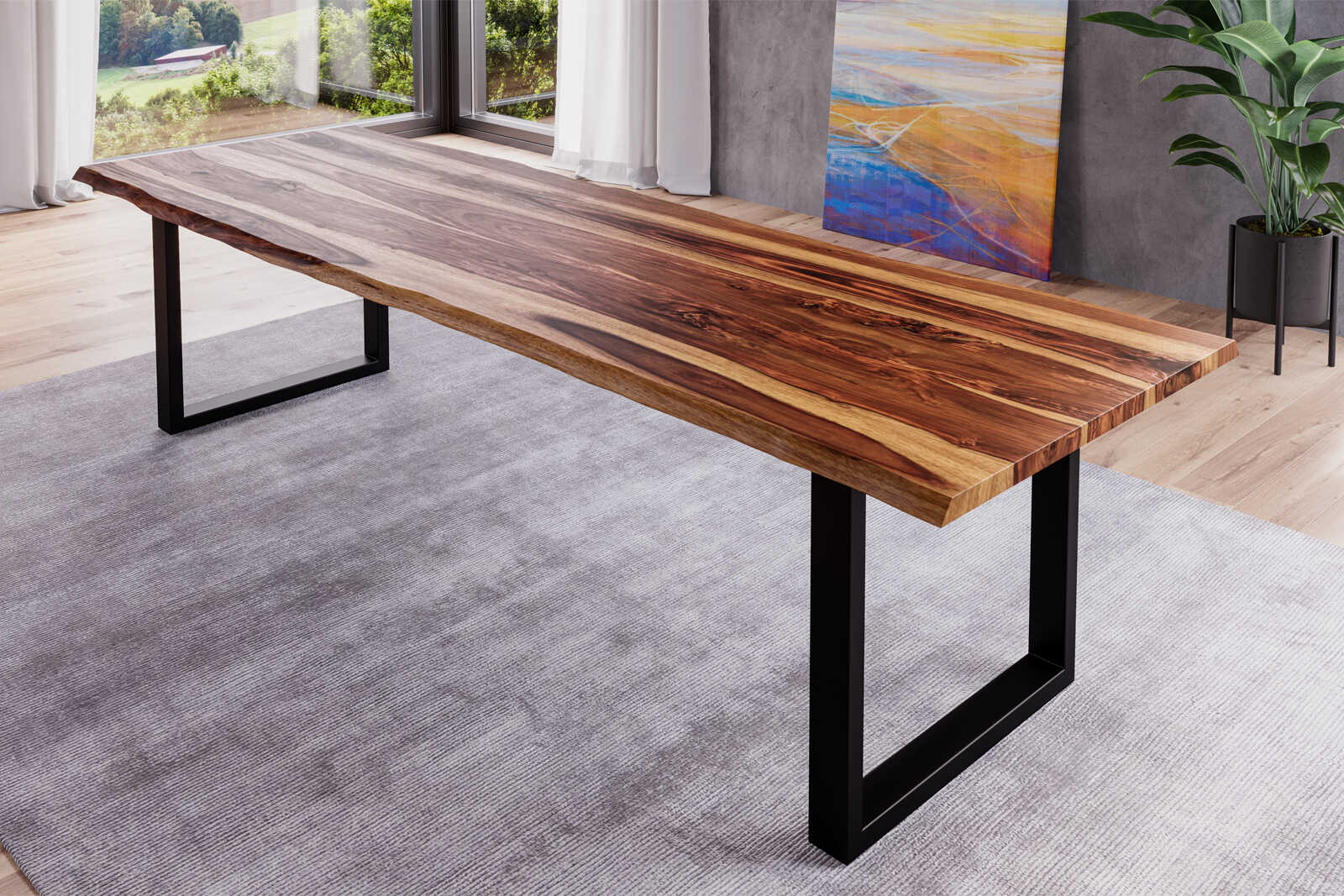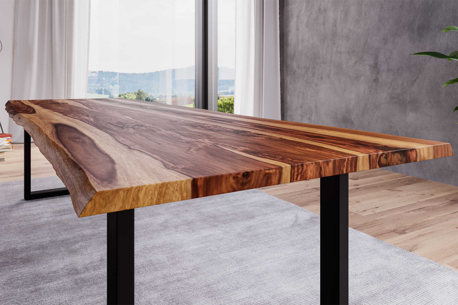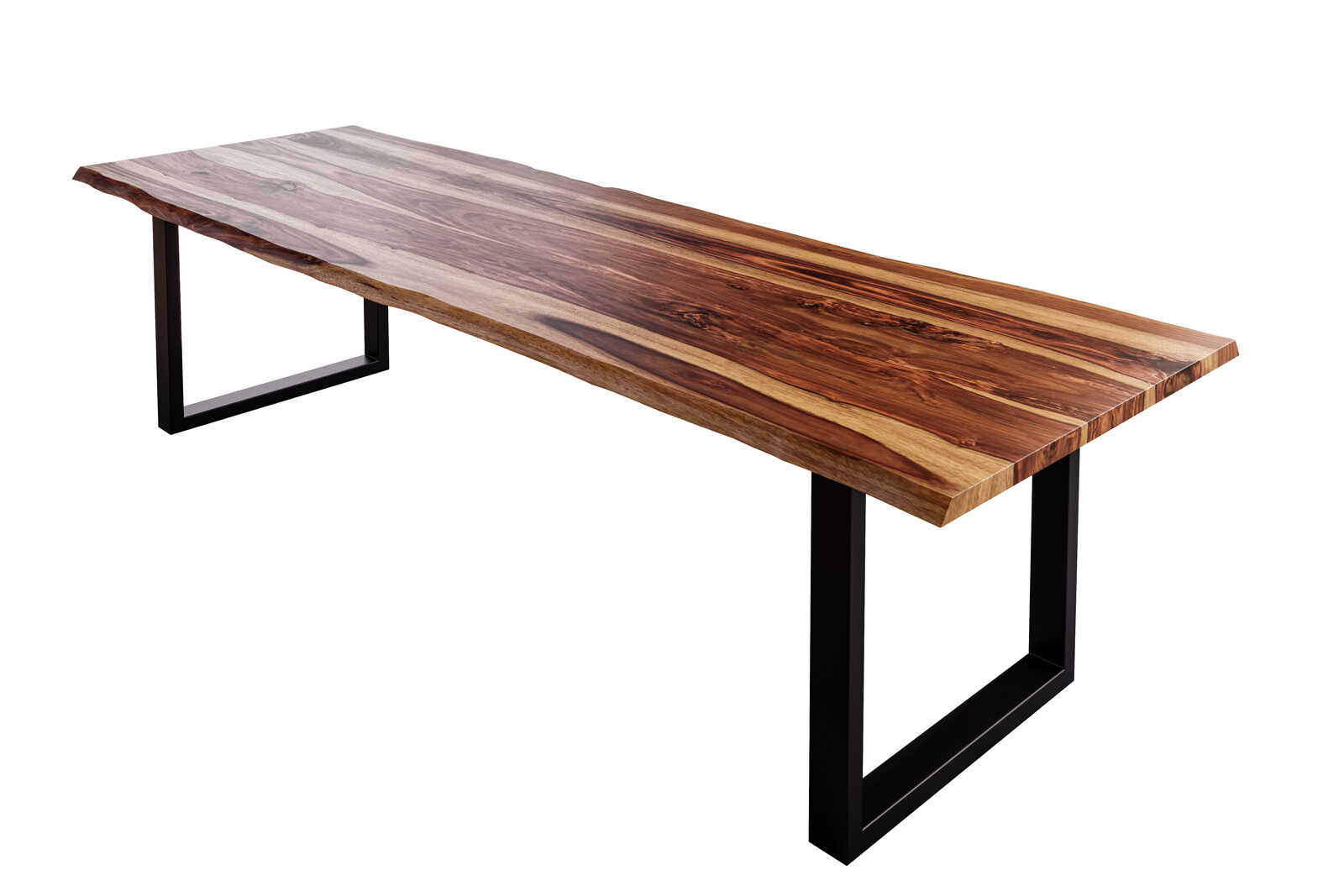 Baumkantentisch 280x100cm London, Sheesham-Holz shinafarben lackiert/Mattschwarz