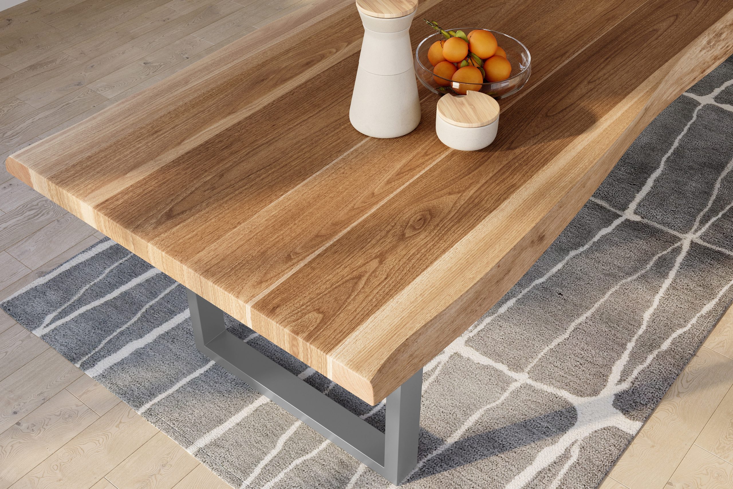 Esszimmertisch Titan | 300 x 110 cm | Akazienholz massiv & naturfarben | U-Gestell Metall Silber | echte Baumkante