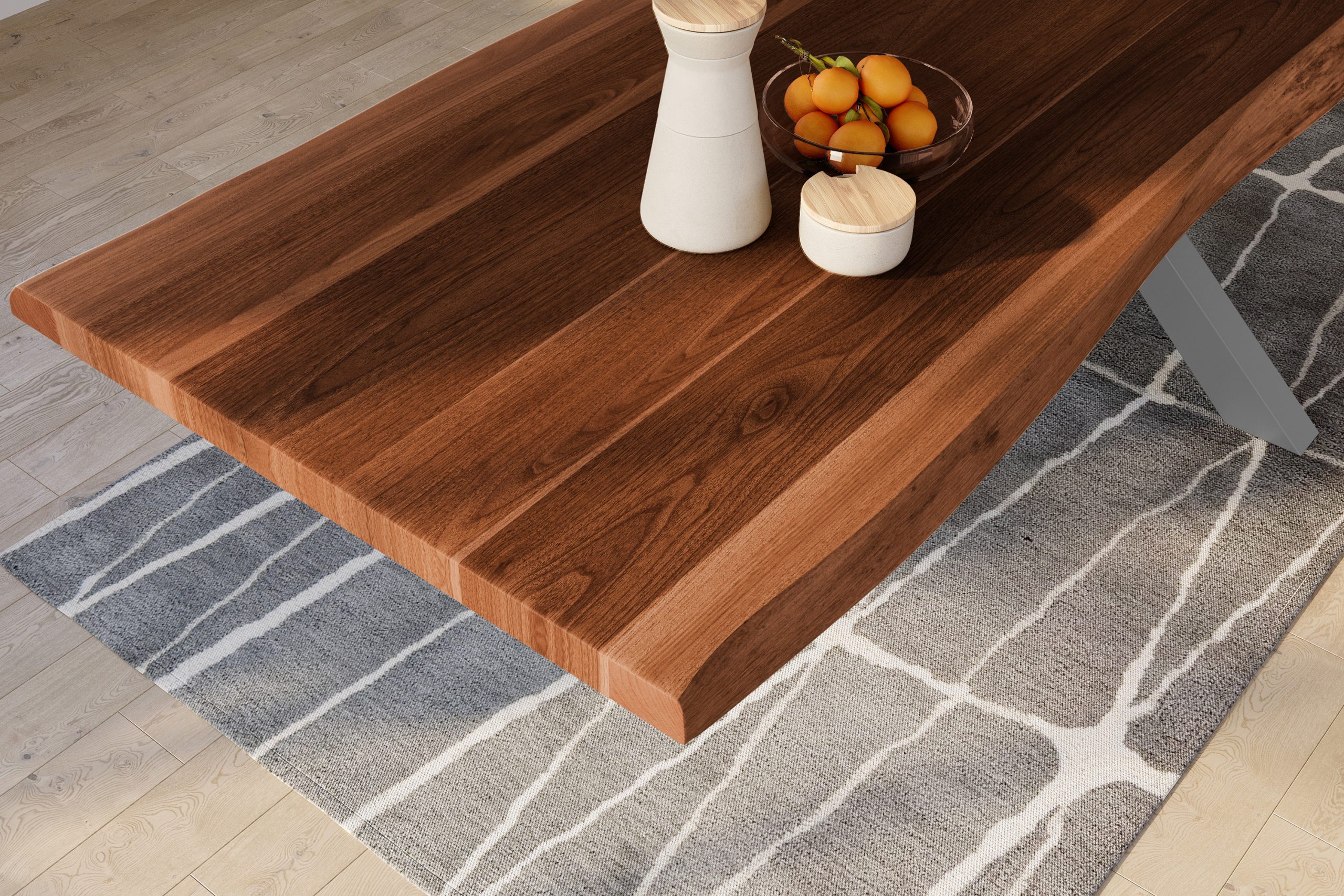 - Unterschiedliche Kantenausprägungen, Maserungen sowie Farbnuancen machen jeden Tisch zum Einzelstück.