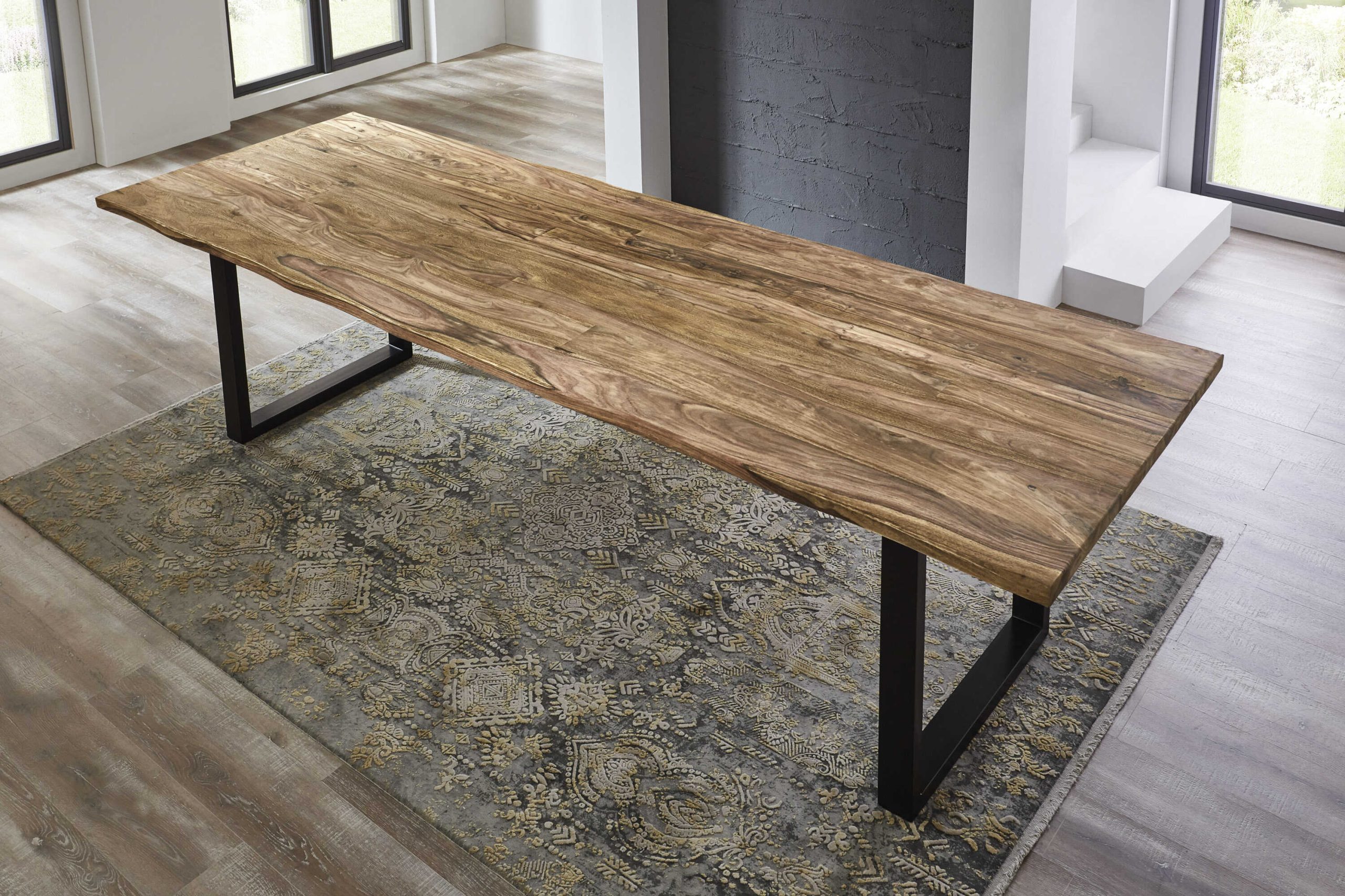 Baumkantentisch 300x100cm Lotti, Sheesham-Holz naturbelassen/Mattschwarz