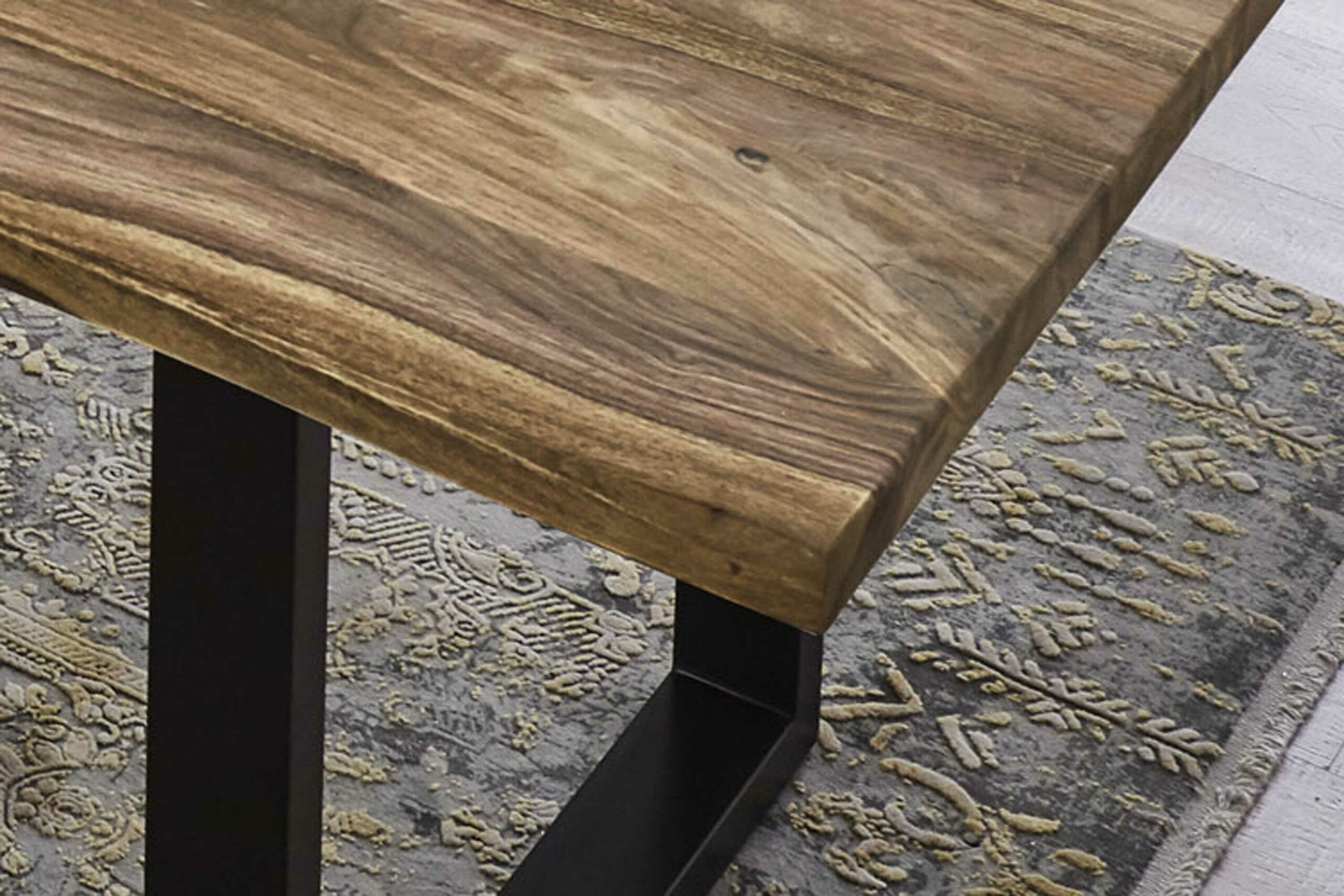Natürliche & einzigartige Holzmaserung, U-Gestell in Mattschwarz, jedes Exemplar ist ein Unikat