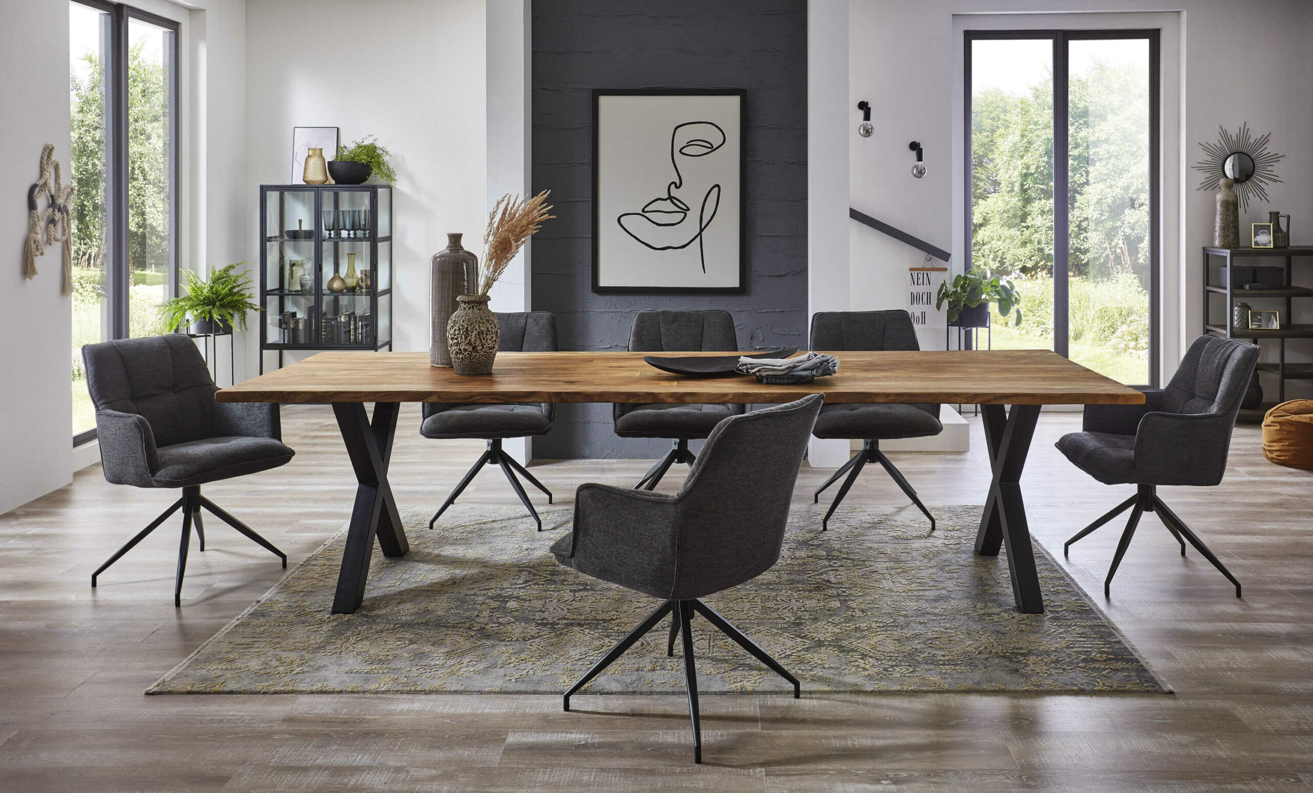 - Hochwertiger und trendiger Esstisch mit 35 mm dicker Holzplatte mit echter Baumkante.