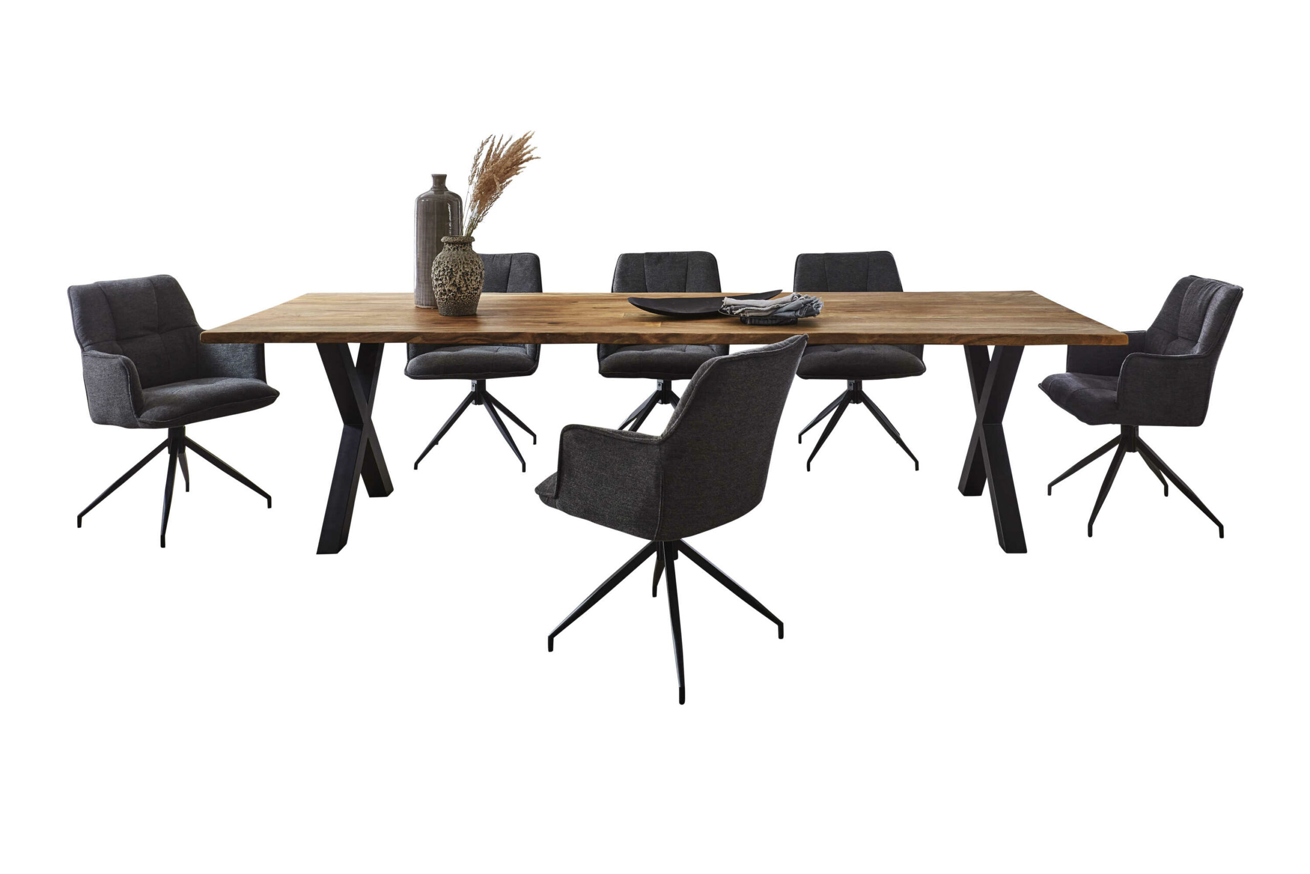 Natürliche & einzigartige Holzmaserung, X-Gestell in Mattschwarz, jedes Exemplar ist ein Unikat