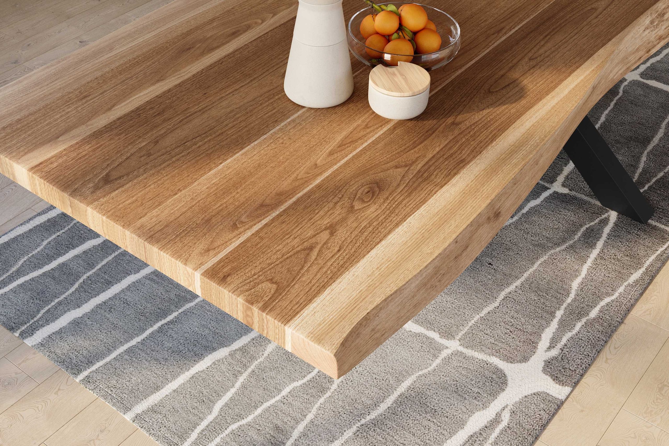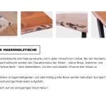 - Unterschiedliche Kantenausprägungen, Maserungen sowie Farbnuancen machen jeden Tisch zum Einzelstück.