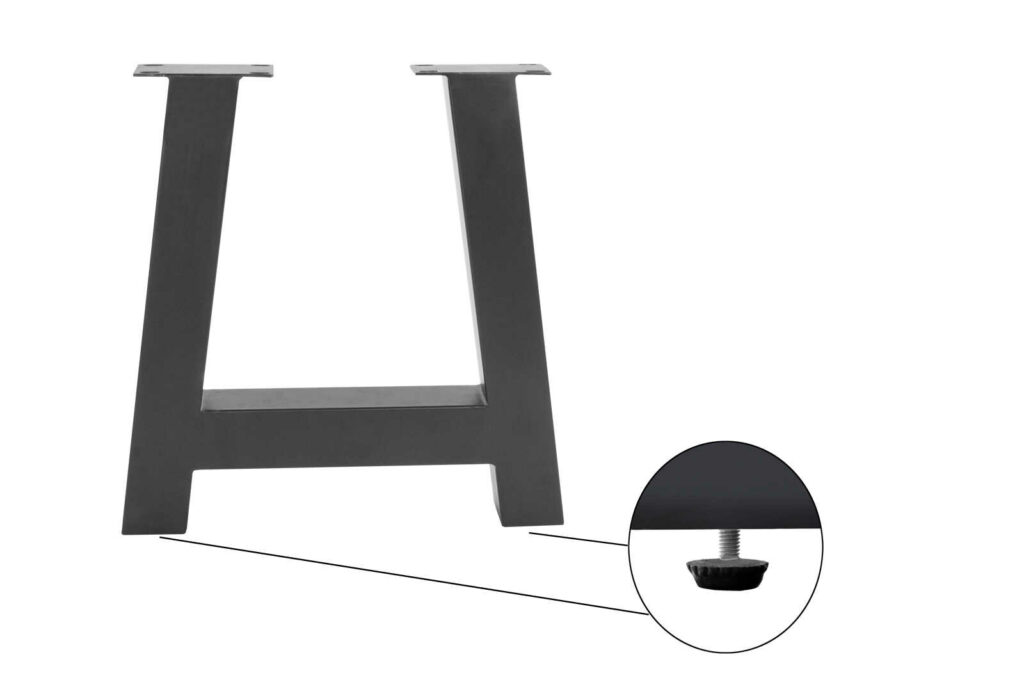 - Das formschöne A-Gestell aus Eisen bildet einen spannenden Kontrast zur massiven Tischplatte und sorgt für einen stabilen Stand.