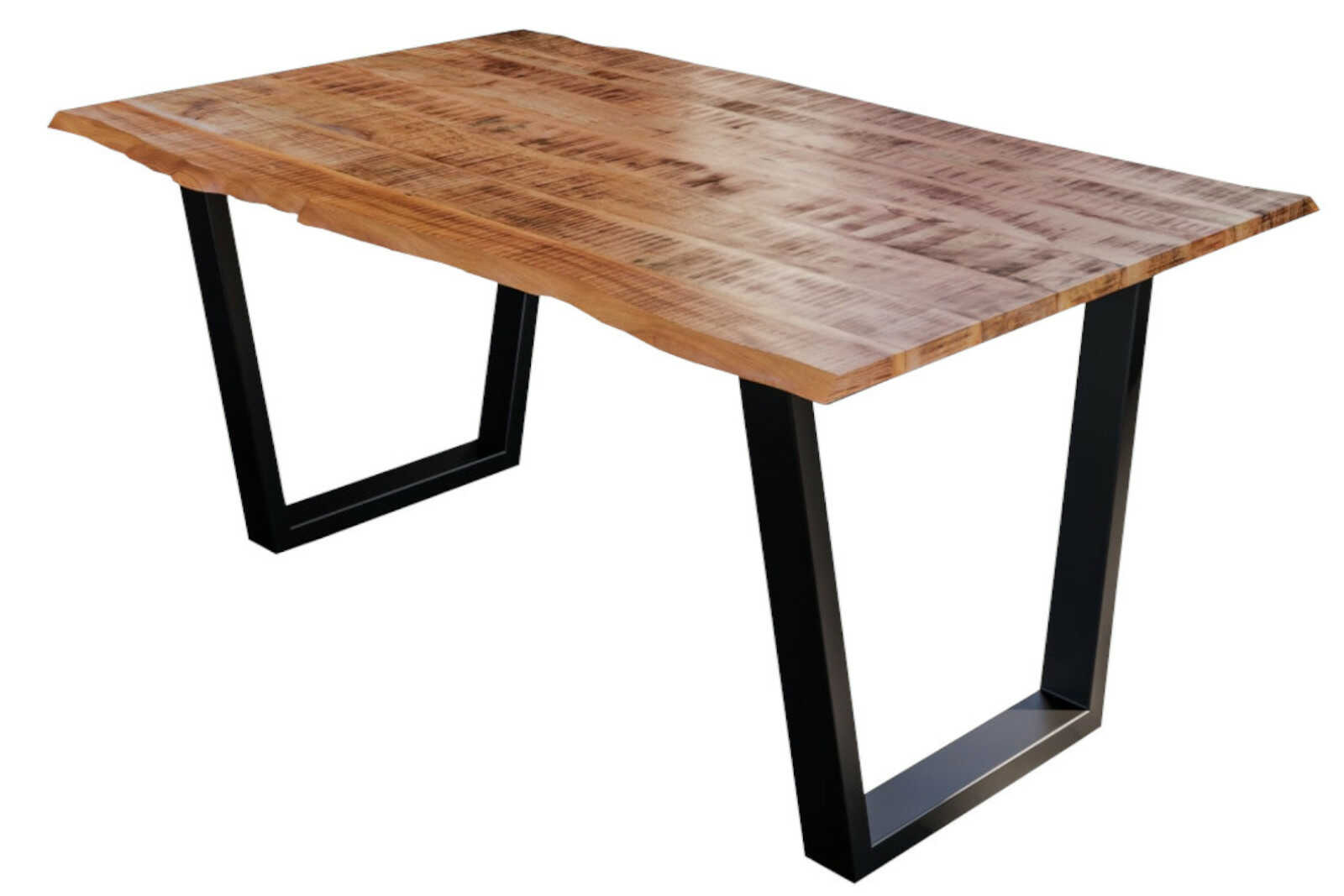 Baumkantentisch Dora, Esszimmertisch 160 x 85 cm, Mangoholz massiv, lackiert & naturfarben, Metallgestell in Mattschwarz