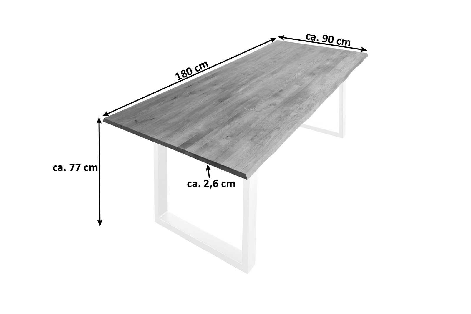 Baumkantentisch SERRA, Esszimmertisch 180 x 90 cm, Wildeiche, weißes U-Gestell aus Metall