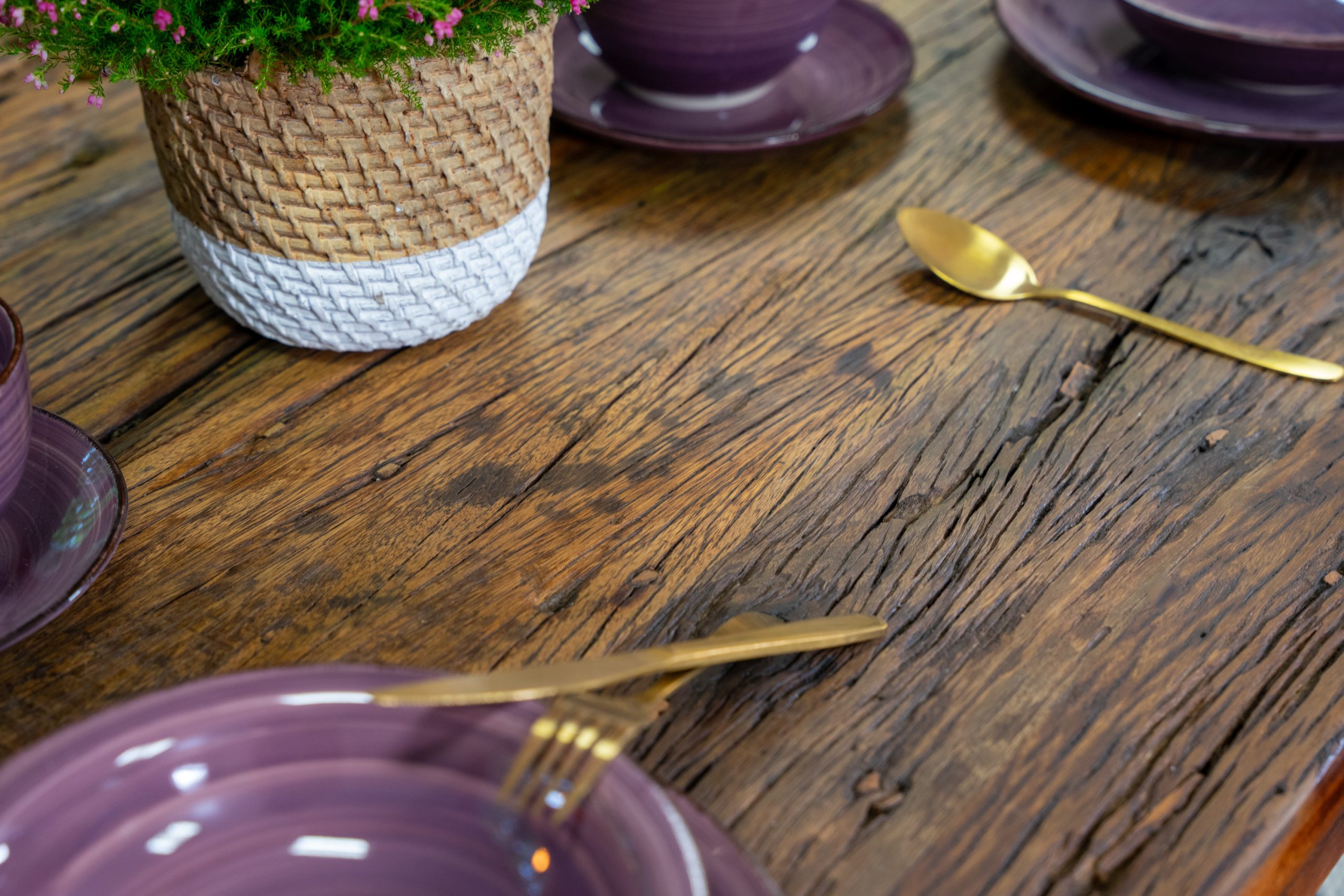 Durch fachkundige Kleinbetriebe und Schreinermeister werden die Holzplanken in liebevoller Handarbeit zu einer Tischplatte zusammengesetzt. Spuren des originalen Gebrauchs betonen den antiken Stil auf imposante Weise und sind deshalb absichtlich belassen. Das beeindruckende Erscheinungsbild wird durch die Kantengebung im Baumkanten-Look unterstrichen. Die unterschiedlichen, behaglichen Brauntöne, vermitteln ineinander verschwimmend ein Bild von Ruhe und Geborgenheit. Auch in seinen „zweiten Leben“ macht das Altholz den Tisch zu einem stabilen und qualitativ hochwertigen Möbelstück mit Nostalgiefaktor.