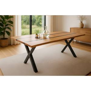 Die Kombination unserer metallenen Tischgestelle mit der massiven, naturbelassenen Holzplatte ergibt die perfekte Symbiose aus Natürlichkeit und modernem Touch.