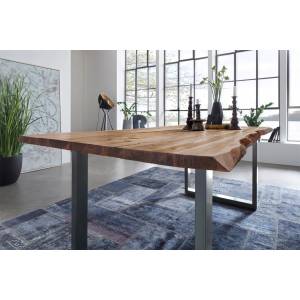 Die Kombination unserer metallenen Tischgestelle mit der massiven, naturbelassenen Holzplatte ergibt die perfekte Symbiose aus Natürlichkeit und modernem Touch.