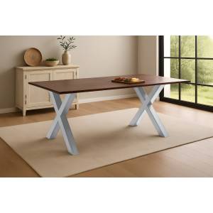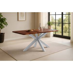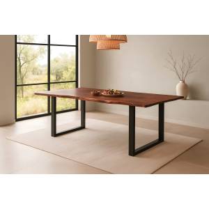 Die Kombination unserer metallenen Tischgestelle mit der massiven, naturbelassenen Holzplatte ergibt die perfekte Symbiose aus Natürlichkeit und modernem Touch.