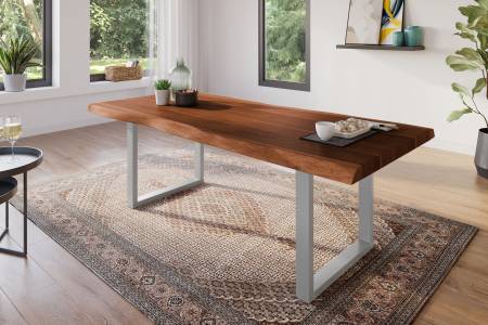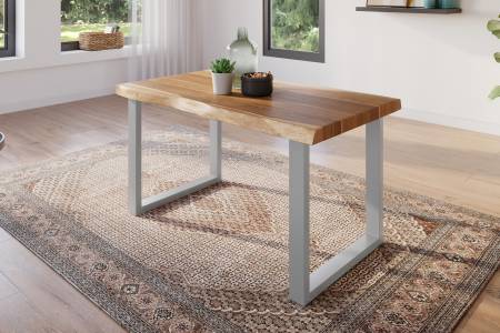 Die Kombination unserer metallenen Tischgestelle mit der massiven, naturbelassenen Holzplatte ergibt die perfekte Symbiose aus Natürlichkeit und modernem Touch.