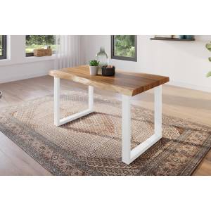 Ein Esstisch mit Baumkante hat grundsätzlich immer eine robuste Stärke – das liegt sprichwörtlich in der Natur der Sache. Die Plattenstärke bewegt sich dabei bei den meisten Tischen zwischen 2,6 und 3,5 cm, es gibt jedoch für Freunde und Freundinnen wahrer Rustikalität auch Ausreißer nach oben und Tische mit entsprechend dickerer Platte – verwenden Sie bei der Suche nach einzelnen Stärken unsere Produktfilter, um die richtige Stärke zu finden.