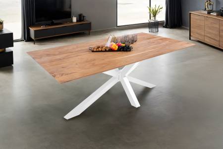 Die Kombination unserer metallenen Tischgestelle mit der massiven, naturbelassenen Holzplatte ergibt die perfekte Symbiose aus Natürlichkeit und modernem Touch.