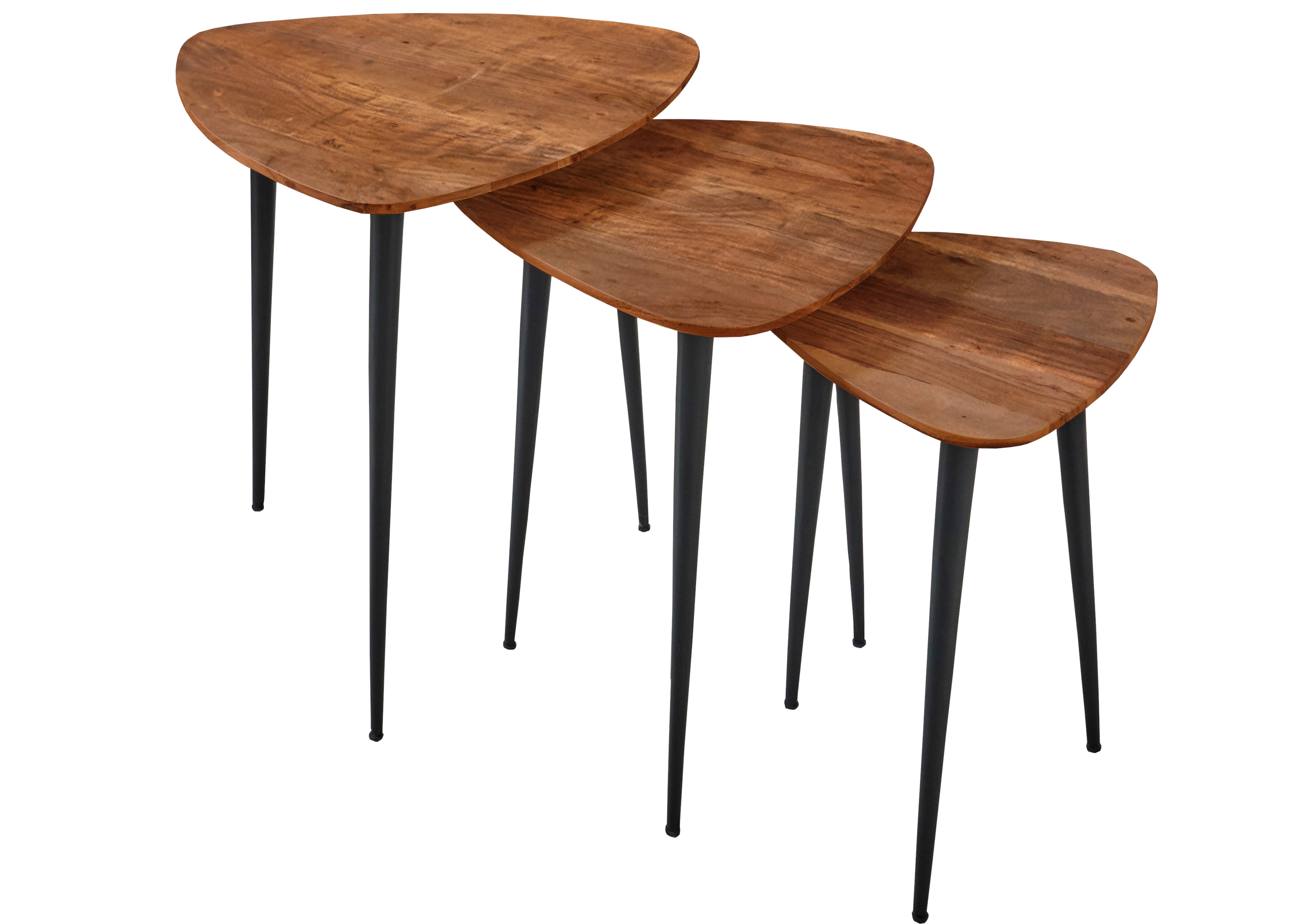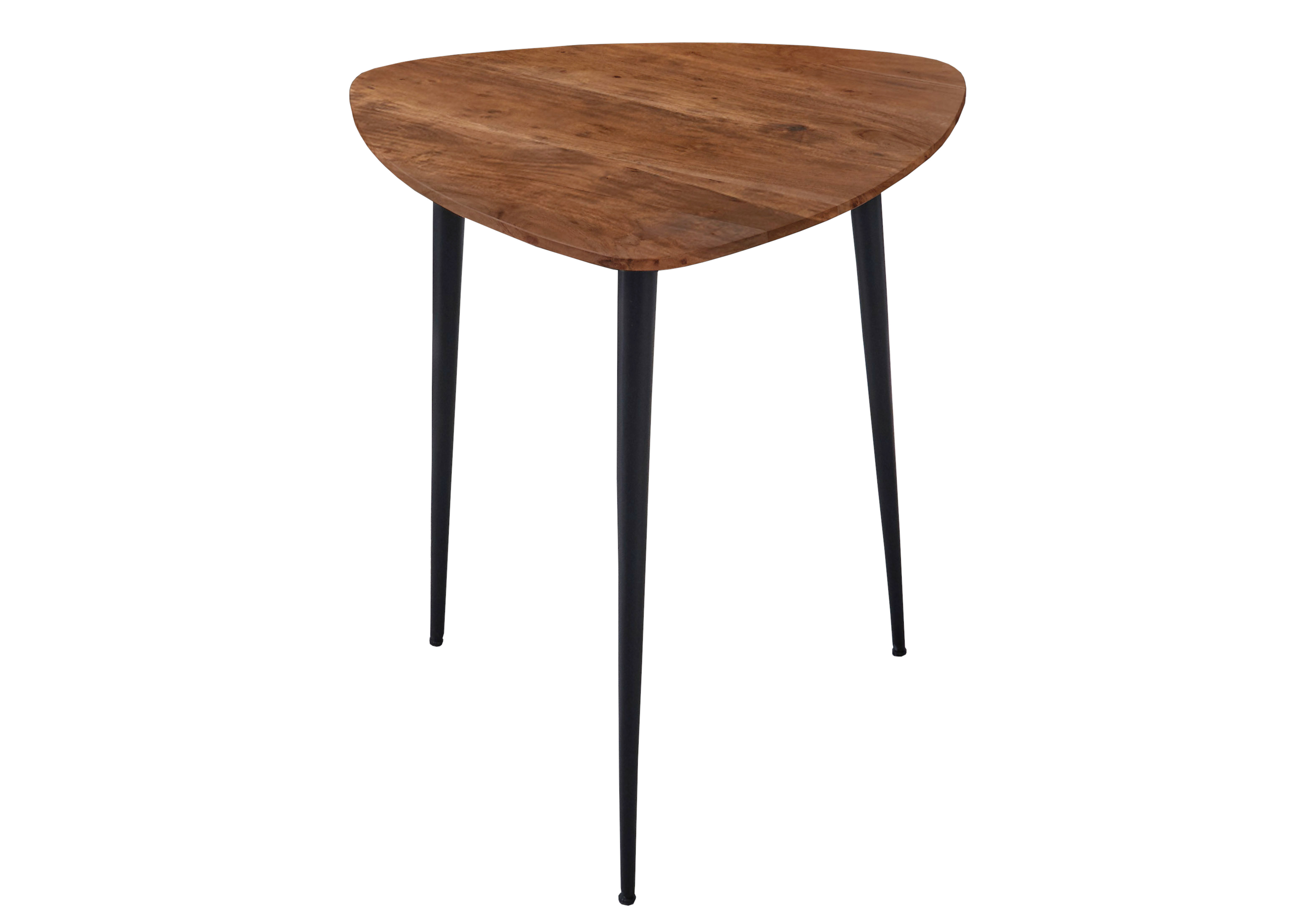 - Der Sofatisch besteht aus massivem Akazienholz und besitzt ein Gestell aus schwarz lackiertem Eisen.