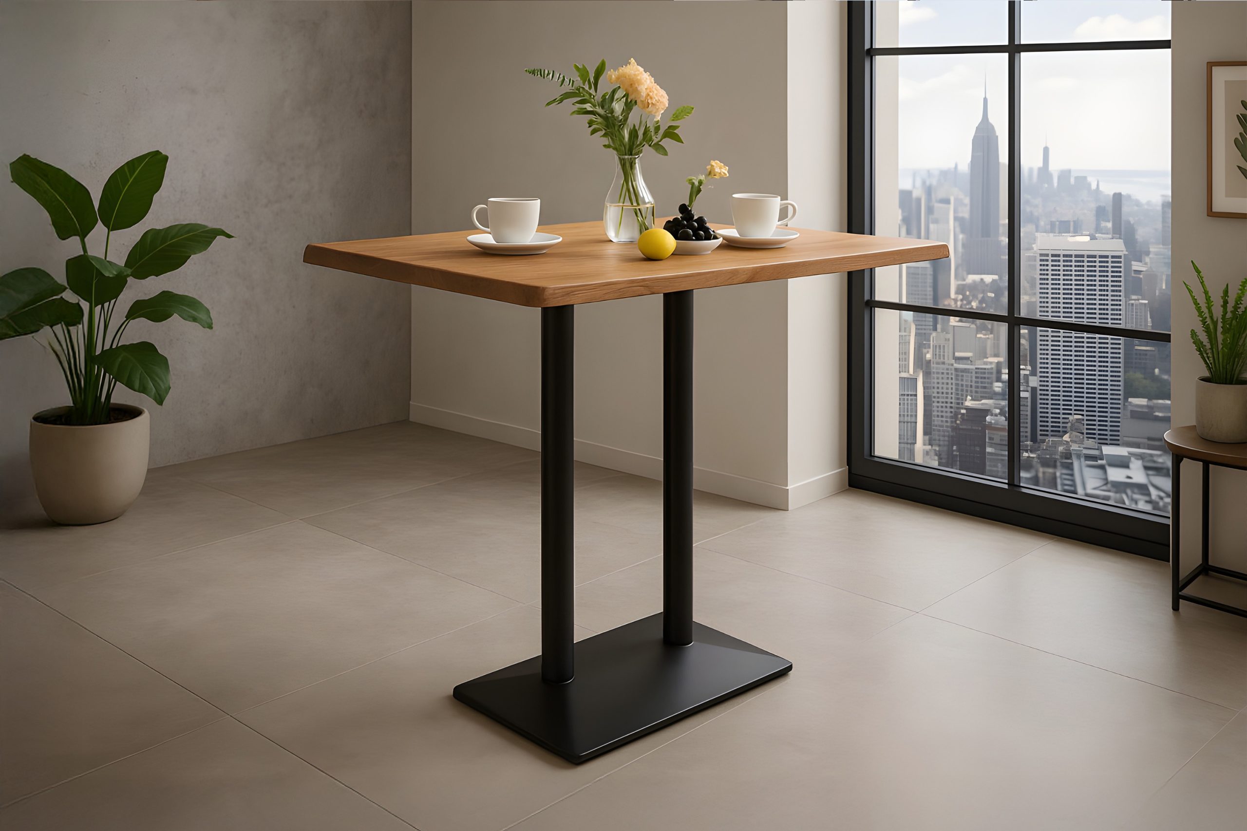 Das moderne Doppel-Säulengestell aus schwarz lackiertem Metall sorgt für hohe Standfestigkeit und verleiht dem Tisch seinen minimalistischen Industrial-Charakter. Ob als Stehtisch für die Küche, als kompakter Esstisch für zwei Personen oder als stylisher Bistrotisch im Wohnbereich – Ian macht überall eine gute Figur.