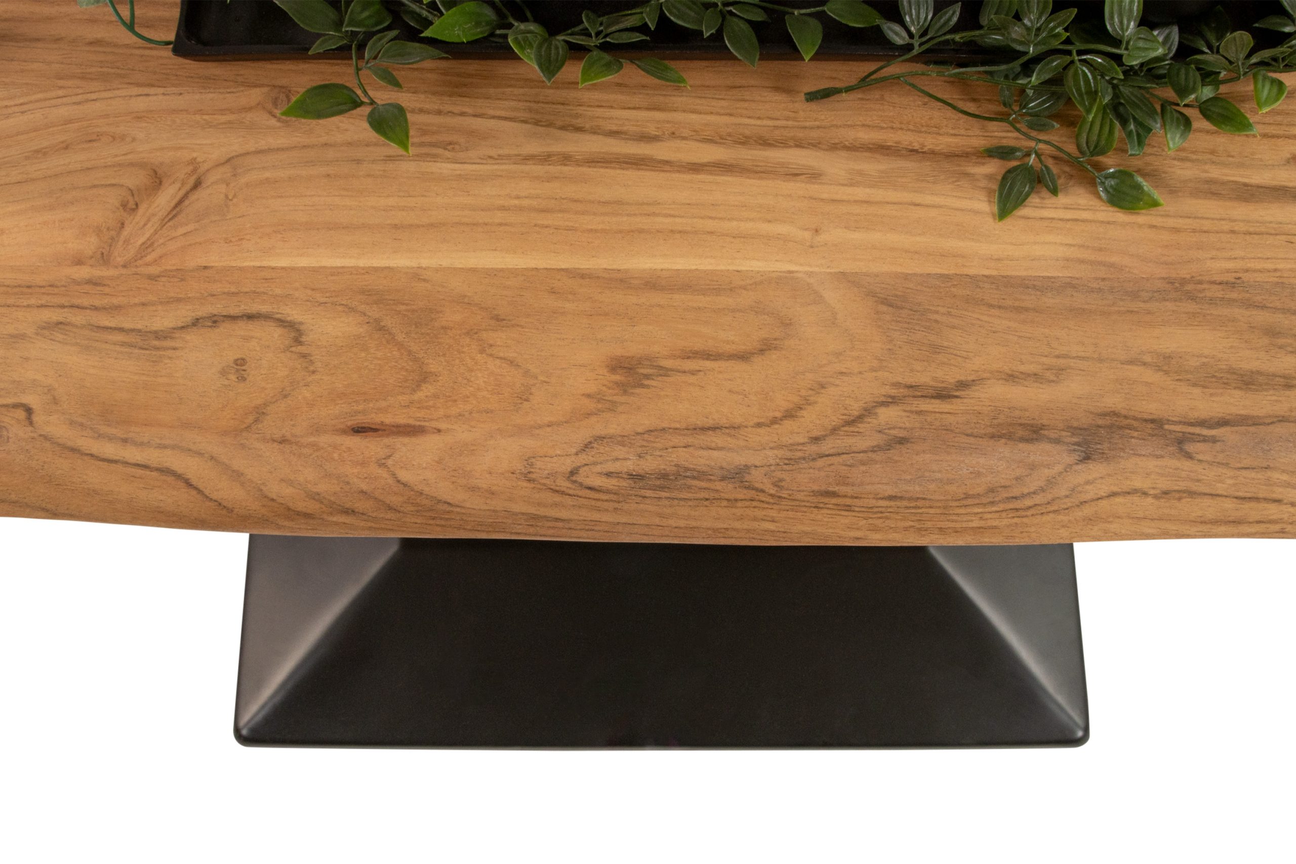 Die robuste Holzplatte ist 26 mm stark und wurde naturfarben lackiert. So bleibt die warme Farbgebung des Akazienholzes erhalten und die Oberfläche ist gleichzeitig optimal vor Feuchtigkeit und Gebrauchsspuren geschützt.