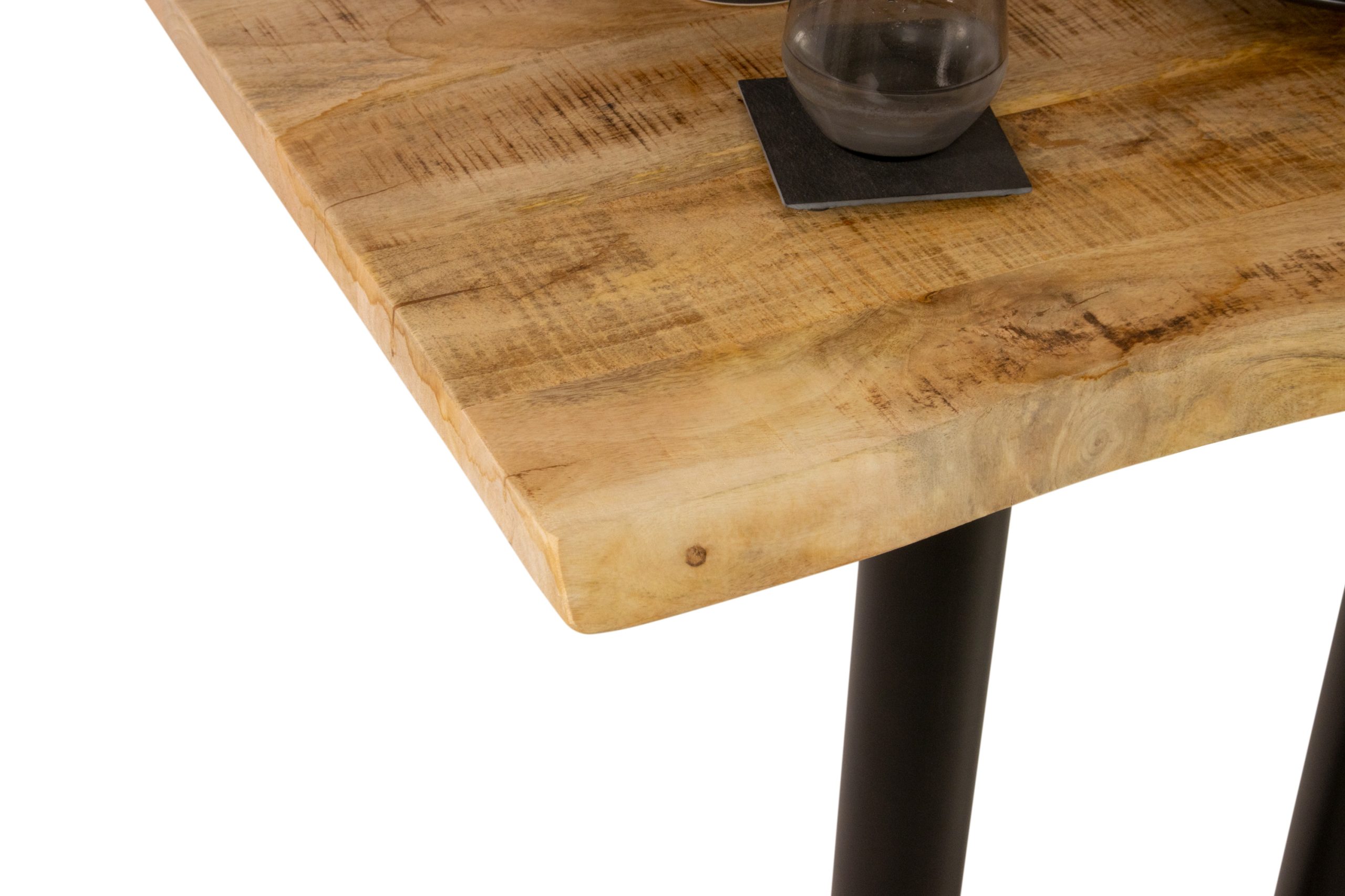 Bartisch Ian | 100 x 60 cm | Mangoholz massiv + naturfarben lackiert | Doppel-Säulengestell Schwarz | Baumkante