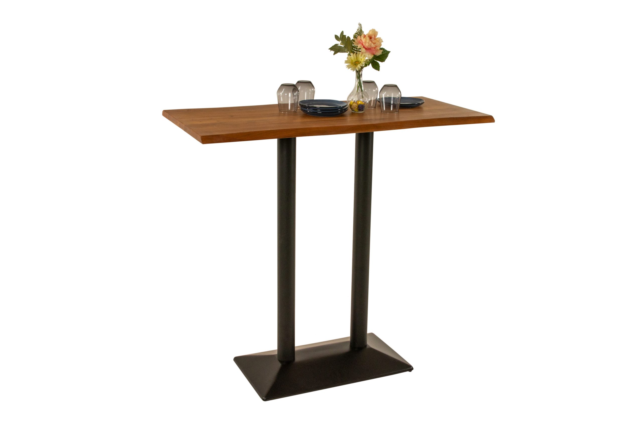 Bistrotisch Ian | 120 x 60 cm | Akazienholz massiv + nussbaumfarben | Doppel-Säulengestell Schwarz | Echte Baumkante