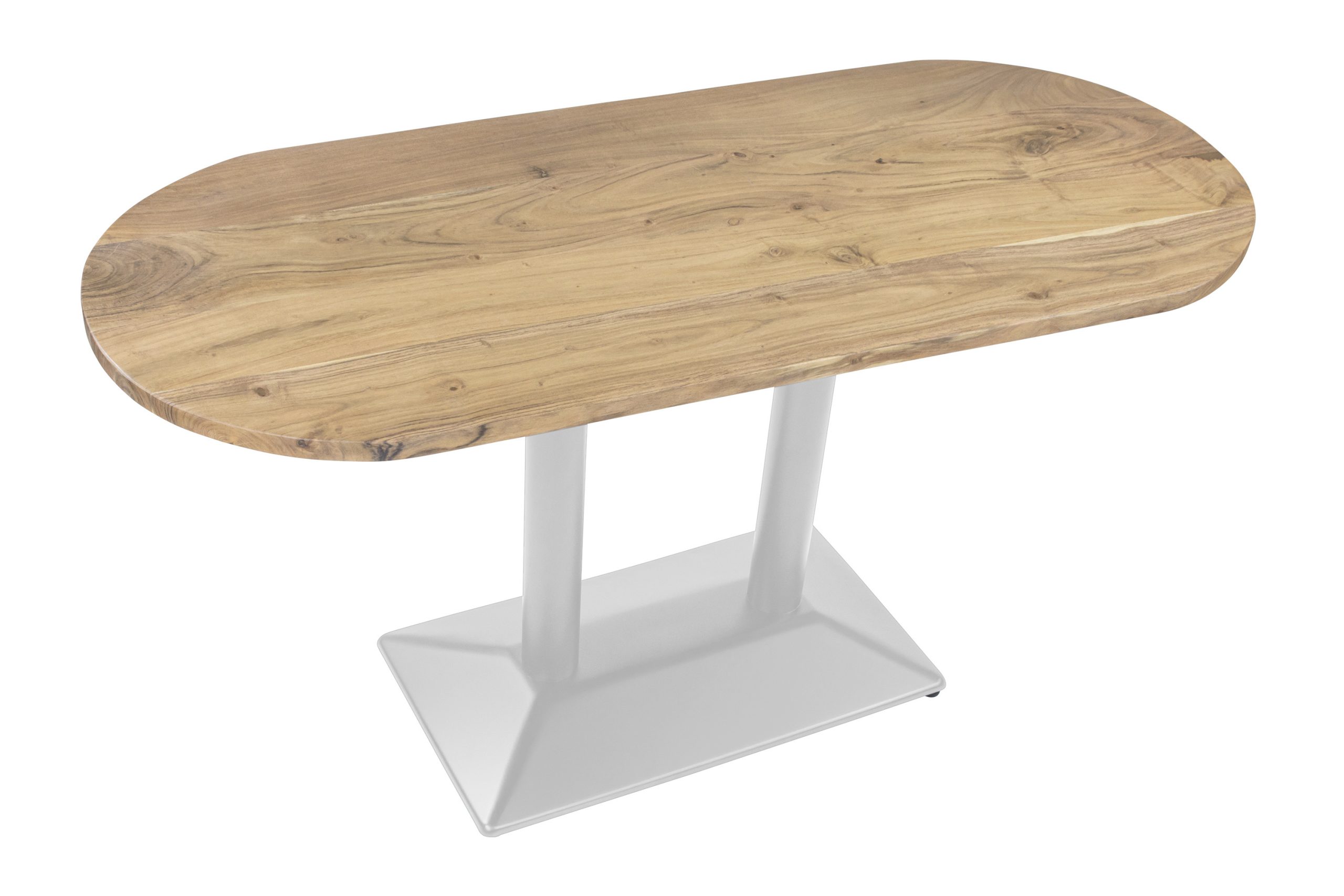 Bistrotisch Emilian | 140 x 60 cm oval | Akazienholz massiv + naturfarben | Doppel-Säulengestell Silber