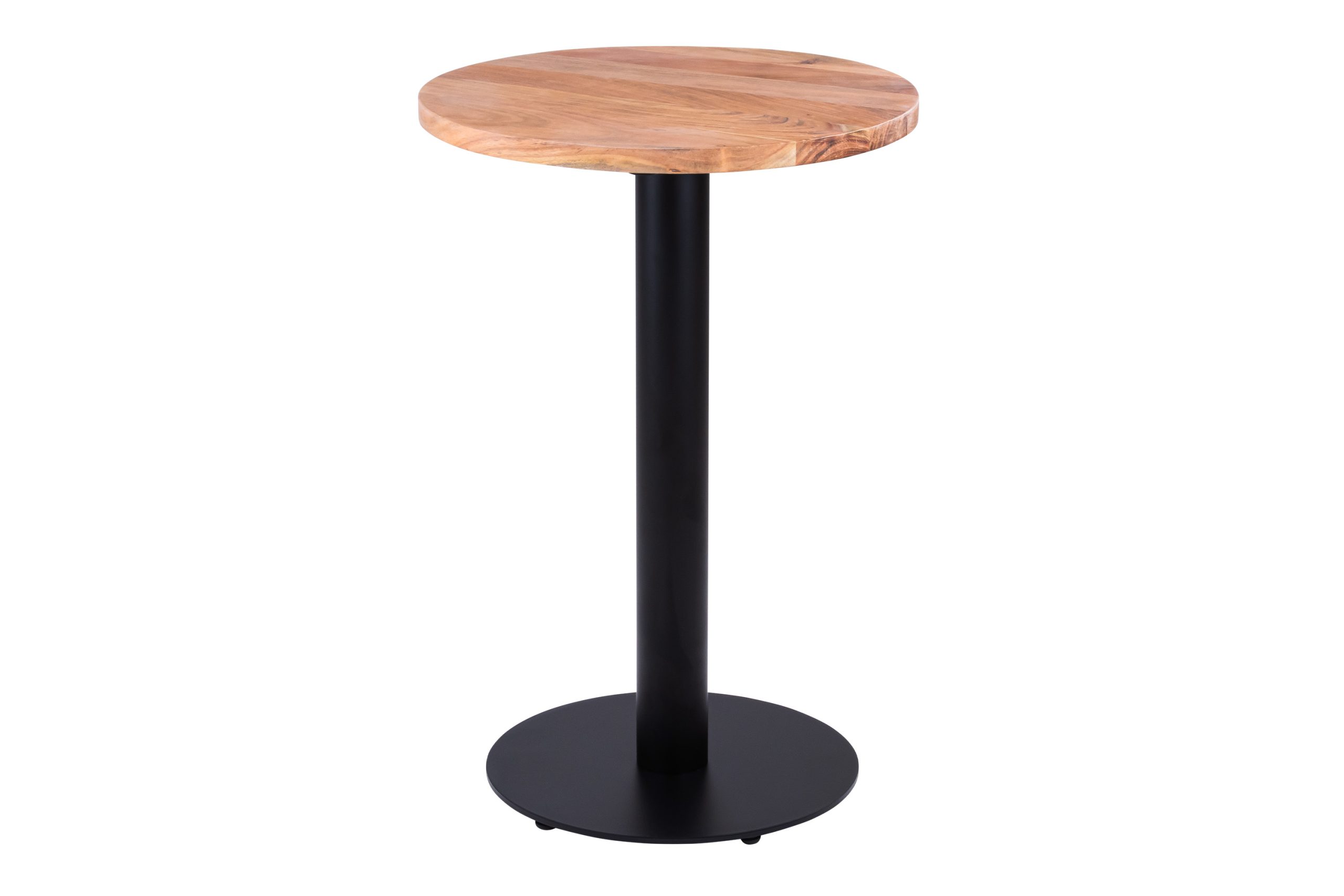 Bistrotisch Emilio | 50 x 50 cm rund | Akazienholz massiv + naturfarben | gerade Kanten | Säulengestell Schwarz rund