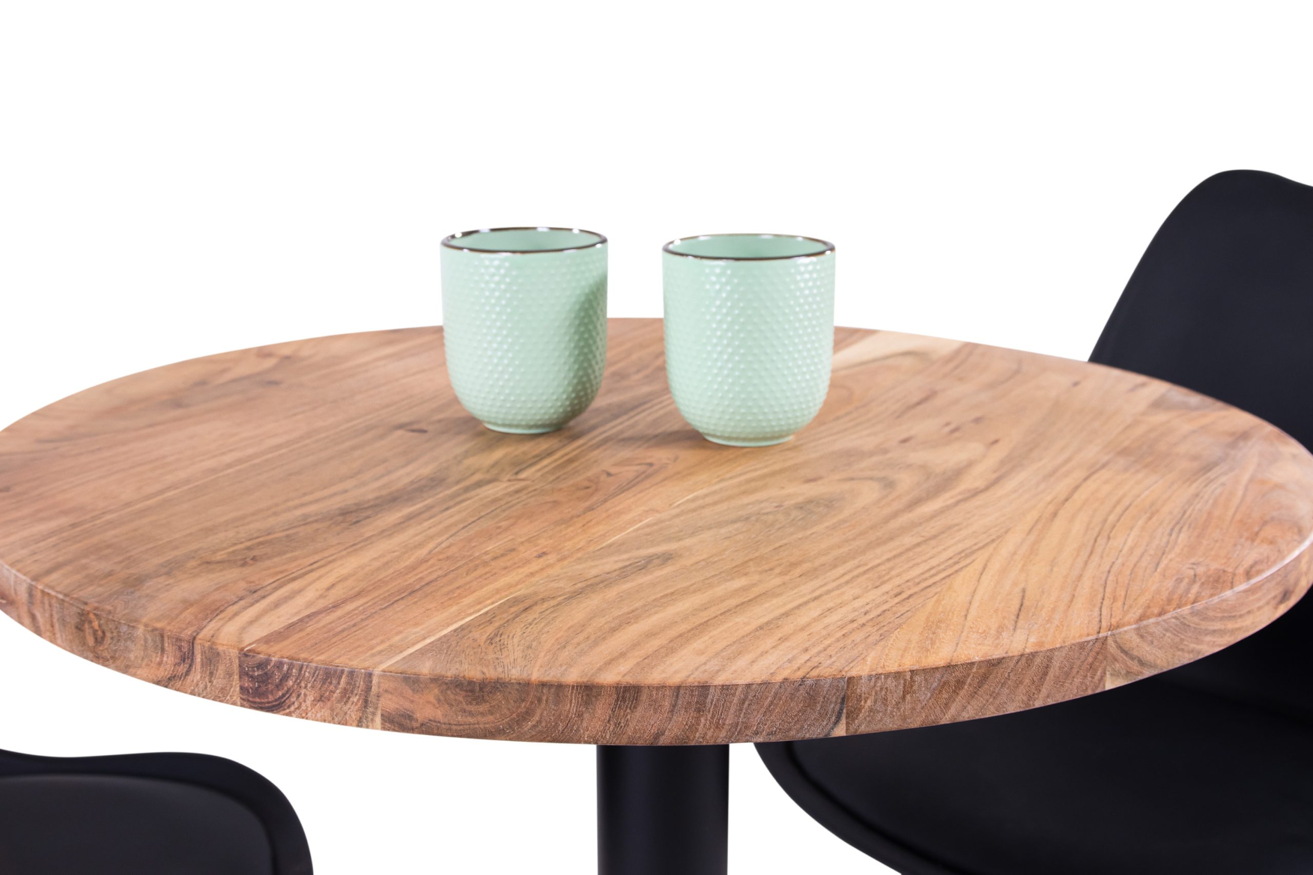 Bistrotisch Emilio | 70 x 70 cm rund | Akazienholz massiv + naturfarben | gerade Kanten | Säulengestell Schwarz rund