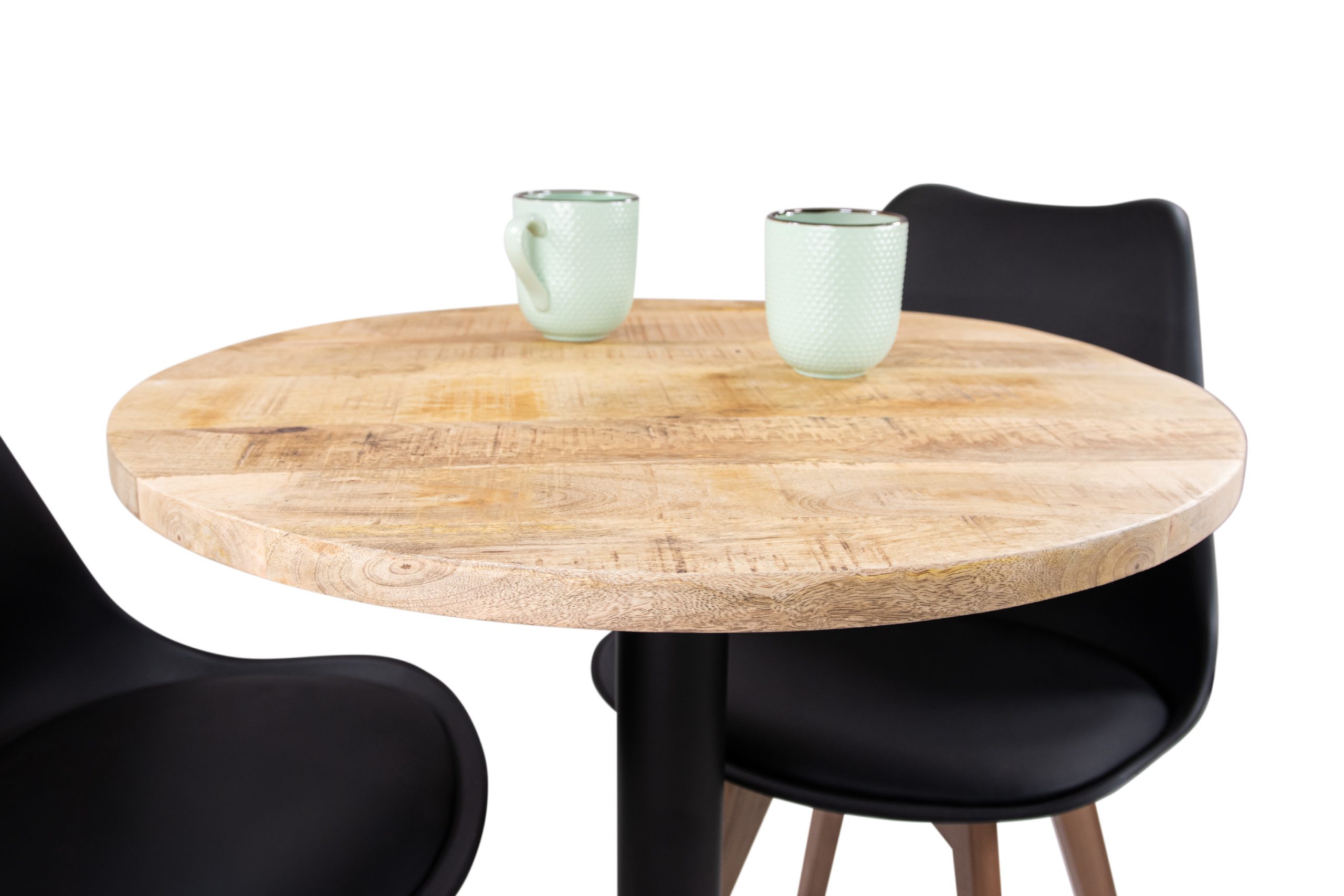 Bistrotisch Emilio | 70 x 70 cm rund | Mangoholz massiv + rough | gerade Kanten | Säulengestell Schwarz rund
