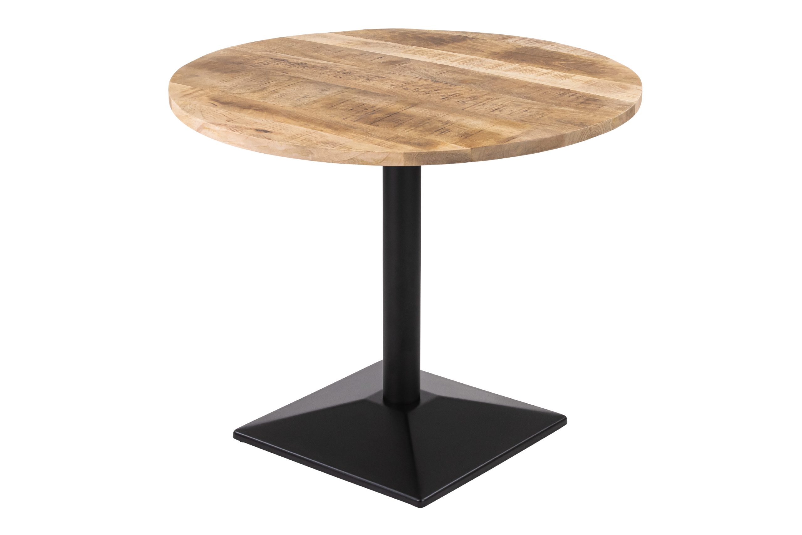 Bistrotisch Emilio | 90 x 90 cm rund | Mangoholz massiv + rough | gerade Kanten | Säulengestell Schwarz eckig