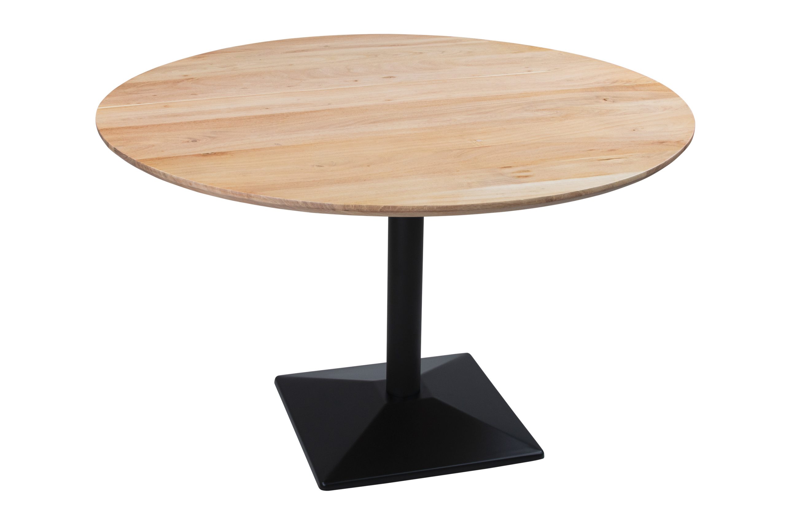 Bistrotisch Brasilia | 110 x 110 cm rund | Akazienholz massiv + naturfarben | Schwarzer Säulenfuß Metall | Schweizer Kante