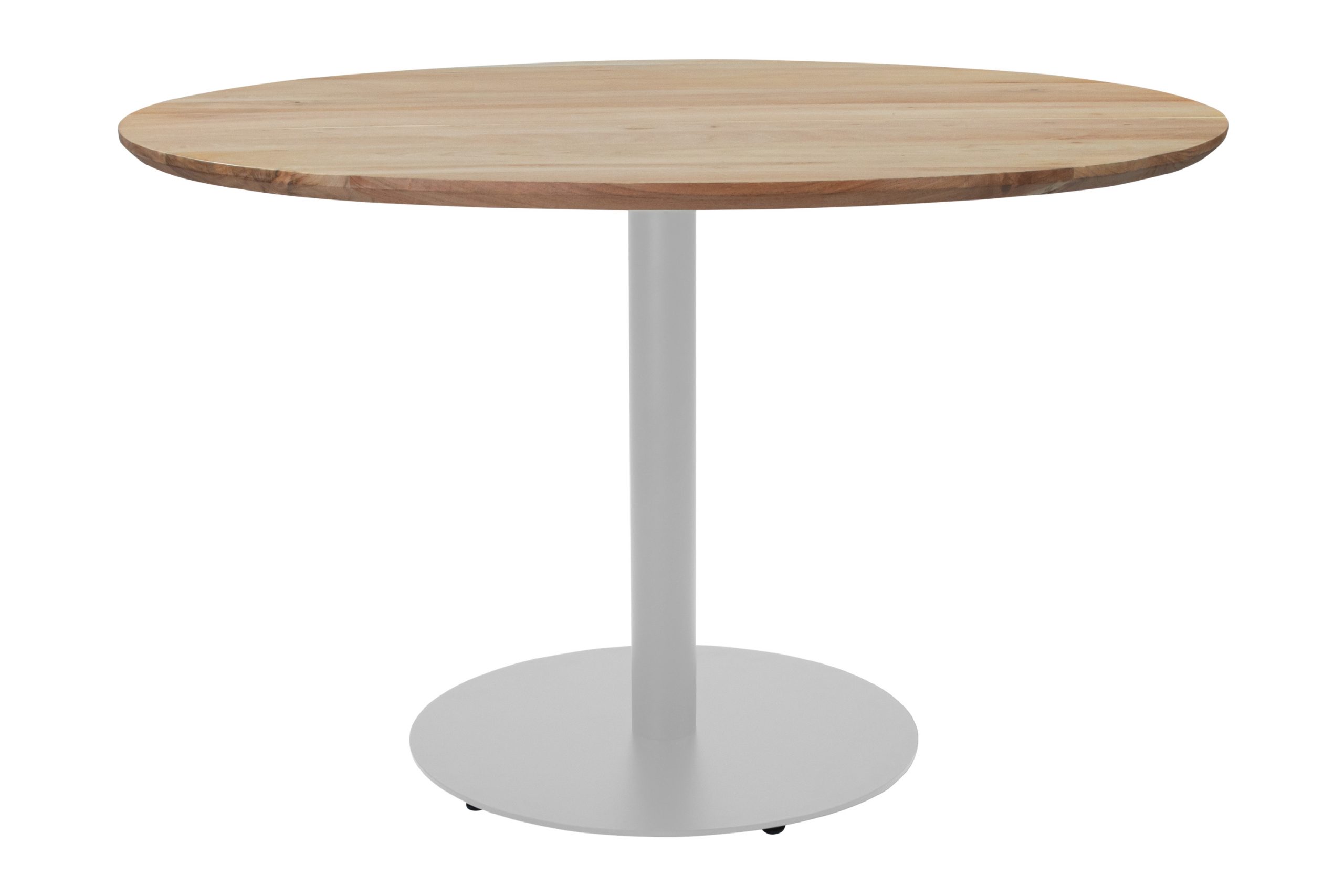 Bistrotisch Brasilian | 110 x 110 cm | Akazienholz massiv + naturfarben | Runde Platte mit Schweizer Kante | Silberne Gestell aus Metall
